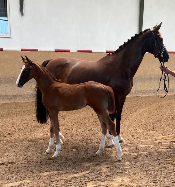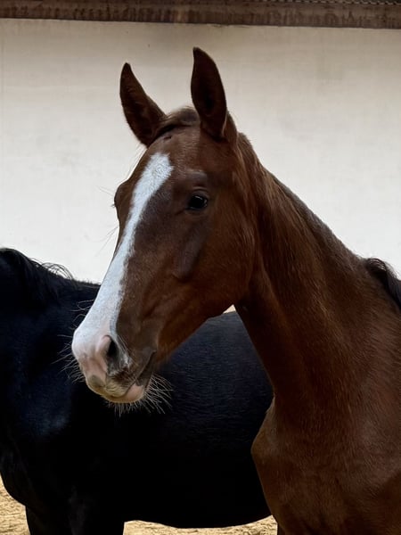 Questa bellissima cavalla è un vero talento emergente per il dressage e si distingue per i suoi movimenti eleganti e di grande struttura. Ha tutto ciò che serve per diventare una futura stella del dressage e colpisce anche per il suo carattere eccellente. Molto affettuosa e tranquilla nel maneggio, offre una gioia assoluta. Alla fine del 2024 è stata svezzata e ora si trova, in modo appropriato per la sua età, con altri puledri in un paddock, dove può crescere in un ambiente naturale. La cavalla proviene da una fattrice esperta e i suoi fratelli maggiori possono essere visionati in loco. Un ulteriore allevamento in loco è possibile previo accordo. A causa di una riduzione del numero di animali, viene ceduta al di sotto del suo valore – un'opportunità unica per acquisire un promettente cavallo giovane! ------- Tutti i nostri cavalli in vendita sono stati regolarmente vaccinati e sverminati sin dalla nascita. Per ulteriori dettagli e domande sui cavalli in vendita, vi preghiamo di contattarci telefonicamente; i messaggi saranno risposti solo in modo limitato.