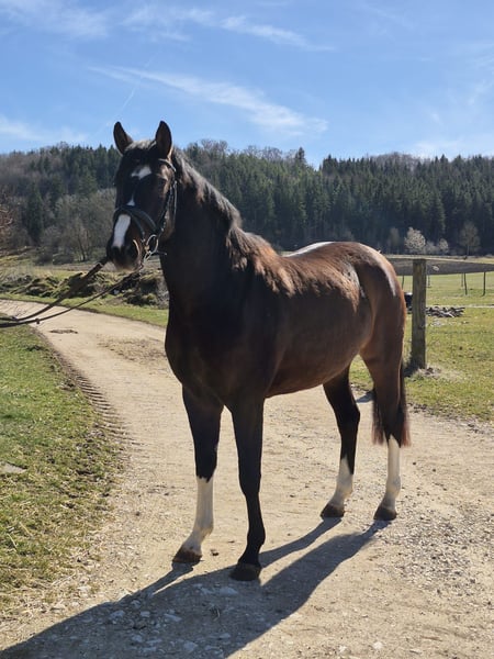 .Schöne 4-jährige Stute von Candid x Casparino – talentiert und entwicklungsfähig Aufgrund von Zeitmangel verkaufen wir unsere selbstgezogene 4-jährige Stute Candita in fördernde Hände. Candita wurde im letzten Jahr schonend angeritten und kennt sowohl Halle als auch Außenplatz. Aktuell steht sie aus zeitlichen Gründen nicht im Training und wird daher als junges, noch unerfahrenes Pferd verkauft – sie ist nicht für Anfänger geeignet. Sie überzeugt mit drei guten Grundgangarten sowie sehr schönem Freispringen und bringt damit eine solide Basis für die weitere Ausbildung im Sport mit. Ausbildung & Haltung: • angeritten • kennt Freispringen • kennt Führanlage • Herdenhaltung im Aktivlaufstall (Stutenherde) • barhuf • regelmäßig geimpft und entwurmt Candita ist ein vielversprechendes Nachwuchspferd und sucht einen liebevollen, fördernden Platz, an dem sie weiter ausgebildet werden kann. 🎥 Videos senden wir gerne per WhatsApp zu. Bei Interesse freuen wir uns über einen Anruf oder eine Nachricht für weitere Informationen