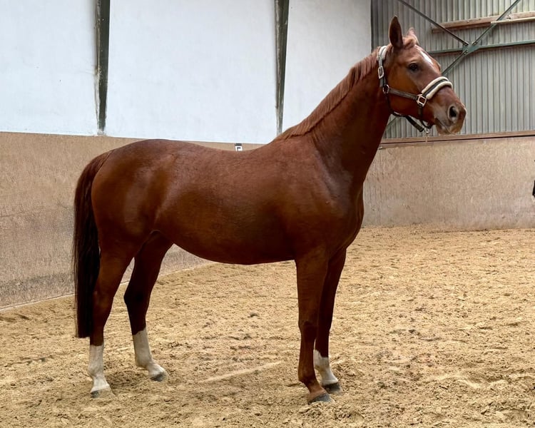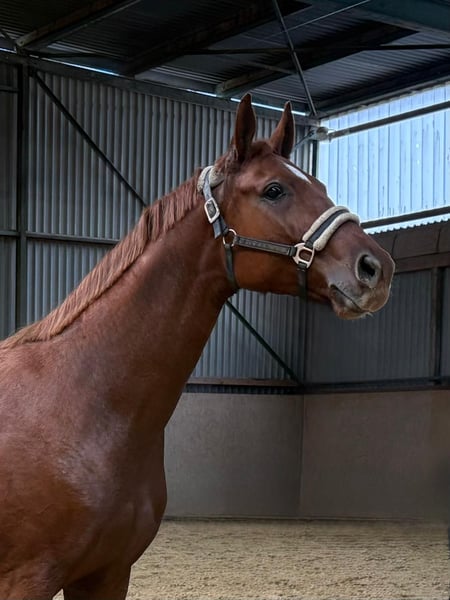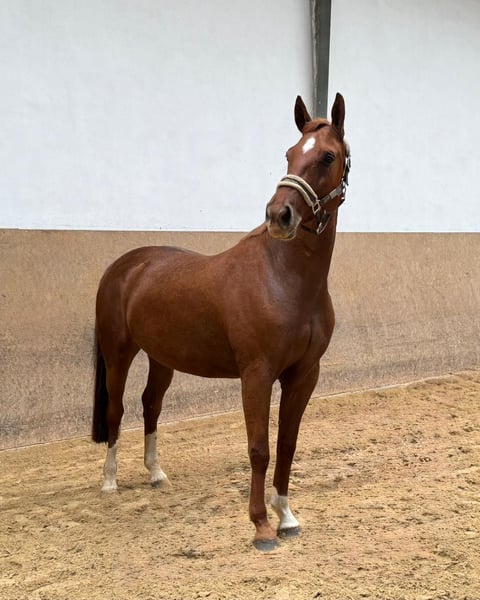 Diese 5-jährige, fuchsfarbene Stute überzeugt durch ihr kräftiges und ausdrucksstarkes Exterieur. Sie entstammt einer guten Abstammung und verfügt über drei sehr gute Grundgangarten. Beim Freispringen zeigt sie sich aufmerksam, mit viel Übersicht und einer sauberen Technik. Aufgrund der vergangenen Personalsituation verbrachte sie den Sommer auf der Weide. Inzwischen ist sie aufgestallt und wird angeritten. Das Verkaufsangebot ist daher zeitlich begrenzt und orientiert sich am jeweiligen Ausbildungsstand. Die Stute präsentiert sich brav im Umgang, ist lernfreudig und deckt durch ihr korrektes, kräftiges Gebäude auch größere Reiter gut ab. Sie ist eine vielversprechende Allrounderin mit Qualität für den ambitionierten Freizeitreiter. Röntgenbilder liegen derzeit noch nicht vor. ------- Alle unsere inserierten Verkaufspferde sind von Geburt an regelmäßig geimpft und entwurmt. Auch eine jährliche routinemäßige Zahnbehandlung gehört bei uns zum Standard. Für weitere Details und Fragen zu den Verkaufspferden kontaktieren Sie uns bitte telefonisch Montag - Freitag von 9 - 18 Uhr. Nachrichten über ehorse werden nur bedingt beantwortet.