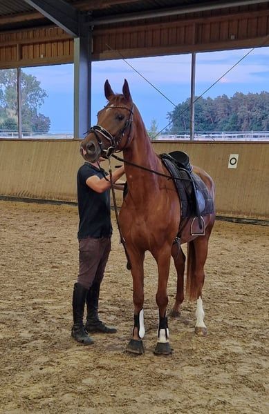 Zum Verkauf steht eine talentierte Stute, die alle Voraussetzungen für eine erfolgreiche Karriere im Dressursport oder in der Zucht mitbringt. Diese Stute überzeugt durch ihren charmanten Charakter und ihre hervorragenden Bewegungen. Sie ist brav im Umgang, gut erzogen und zeigt großes Potenzial in der Dressur. Ideal für ambitionierte Reiter, die ein vielversprechendes Pferd für den Sport oder in Freizeitbereich suchen. Bei Interesse oder für weitere Informationen stehe ich Ihnen gerne zur Verfügung!