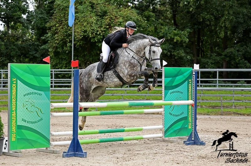 What Else ?! Diese großrahmige, moderne Stute überzeugt mit Vermögen, Übersicht und einem tollen Charakter. Sie wurde bisher von Amateuren vorgestellt. „Else“ ist bis 1,15 m gegangen und bis 1,05 m platziert – dabei stets ehrlich und leistungsbereit. Unter dem Sattel zeigt sie sich jederzeit brav, motiviert und gut regulierbar. Sie vermittelt ihrem Reiter Sicherheit und arbeitet zuverlässig sowohl im Parcours als auch im Viereck. Auch im täglichen Umgang ist sie unkompliziert und für Anfänger geeignet, die einfach nur mit ihr ins Gelände gehen möchten. 🔹 2018 geboren | ca. 1,75 m | Stute 🔹Quiz x Lahnstein 🔹 L-Springen turniereinsatzbereit 🔹 A-Dressur solide ausgebildet 🔹 Kinder geeignet 🔹 Barhuf 🔹 Von Amateur vorgestellt 🔹 Bereits 1 Fohlen 🔹 Gesund & ohne bekannte Einschränkungen Ein tolles Sportpferd für ambitionierte Amateure oder Umsteiger, das sofort eingesetzt und weiter gefördert werden kann. 📍 Standort: Leipzig 💰 Preis: 15.000 - 20.000 € VB 🧰 Zubehör kann gegen Aufpreis mit erworben werden