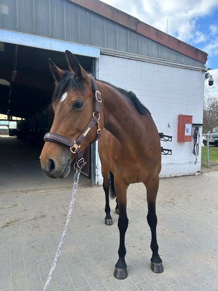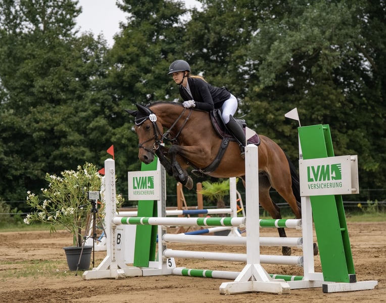 For sale is a high-quality, exceptionally brave 2017-born sport mare with talent and potential for show jumping. The mare is trained up to novice level in dressage and has competition experience. She is very well-behaved and uncomplicated during shows. Her special talent lies in jumping: equipped with plenty of scope and caution, she has already competed successfully in A-level show jumping classes and has placed. Pedigree: Macho B (by Monte Bellini x Landrebell) out of Casskeni II x Levisto. Her impeccable character is particularly noteworthy: in daily handling, she is extraordinarily well-mannered, straightforward, and completely reliable – a true dependable partner. Under saddle, she is sensitive in the mouth, easy to ride, and eager to please. She does not buck or bolt. For her further development, she is looking for a confident rider who can provide her with calmness and security in the arena. With the right rider, she can develop into a motivated and honest partner in show jumping. She is suitable for ambitious amateurs as well as competitive riders seeking a horse with quality, rideability, and potential. A recent dental procedure was fully completed and has no impact on her sporting future. Only to be placed in supportive and suitable hands.