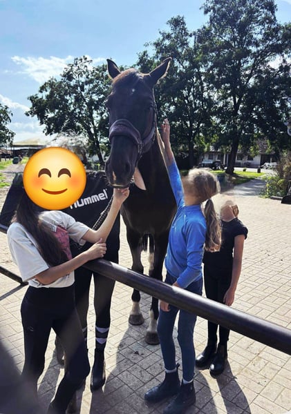 German sport horse, mare, black, 15.2 hh Large-framed, affectionate mare La Petit Noir is affectionately called Pitti. She is a 9-year-old mare, friendly and cuddly with humans, by Le Vivaldi out of Fürst Heinrich x Amerigo Vespucci xx. She is energetic, long-legged, has expressive gaits, power from the hindquarters, and an impeccable temperament. She is registered with a score of 7.0 in the mare book I of the Brandenburg-Anhalt breeding association. Her nature is attentive and sensitive, responding to the faintest signals. She is herd-compatible and currently lives with mares and geldings. She cares lovingly for the young horses in the herd. She has dressage training up to A-level; however, due to a pasture accident, she is NO longer rideable. She enjoys attention, lunging work, walks, and loving company. She is absolutely cuddly with people and very cautious around children! Thanks to her friendly demeanor and calmness, she is suitable for breeding purposes or as a loving companion. She has been regularly vaccinated and dewormed. She loads easily onto a trailer and stands perfectly still for the farrier (barefoot). Her sire, Le Vivaldi, is a movement-rich stallion with an ultramodern appearance. He was awarded premium stallion status at the Hannoveraner licensing in Verden in 2014 and successfully completed the 30-day test in Neustadt/Dosse in 2015. In 2017, he achieved an above-average sport test in Münster/Handorf with high scores in all categories and qualified for the Bundeschampionat with an 8.6. His offspring have been awarded premiums in many breeding regions and achieved above-average prices at auctions. I am reluctantly offering her for sale and wish for her to find a home in an open stable or with plenty of turnout, where she will continue to be valued and well cared for. Price: Negotiable Location: Schönwalde-Glien Contact: Antje Nitzschmann, 0170/48 12 889