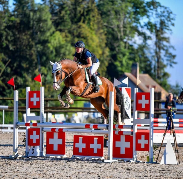 Un hongre de 9 ans est à vendre. Ce petit gars motivé convient aussi bien pour le saut d'obstacles que pour le dressage, il fait un super travail à chaque tâche et veut toujours plaire. Il a été engagé dans des concours de saut d'obstacles (jusqu'à 95 cm) et les a surmontés avec brio. Il montre beaucoup de confiance à l'obstacle et se sent en sécurité dans son travail. Son potentiel n'est de loin pas encore exploité. Il montre également ses bonnes qualités positives lors des sorties en extérieur. Il est très sûr de lui lors de la maréchalerie et de l'embarquement et ne pose aucun problème. Il souhaite trouver une personne ou une famille qui aime s'occuper de lui et lui consacrer du temps.