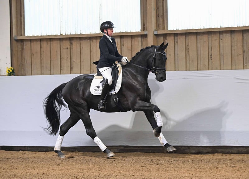 Hier geht's zur Kollektion und Online-Registrierung: https://auktion.pzvbw.de/auctions MwSt. 19 % Mit viel Kraft, Bewegungstalent und besten Rittigkeitswerten gesegnetes Nachwuchspferd. Auf der schwäbsichen Alb in Ruhe gewachsen, sorgfältig angeritten und jetzt bereit für seine ersten öffentlichen Auftritte. This young horse is blessed with plenty of strength, a talent for movement, and excellent rideability. He has grown up in peace on the Swabian Alb, has been carefully broken in, and is now ready for his first public performances.