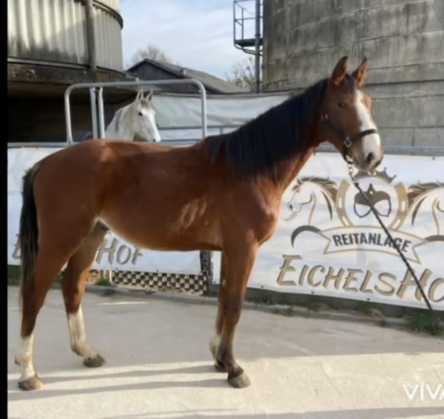 "Cammi" proviene de nuestra propia cría y crece en un establo abierto con acceso diario al pasto en manada. Se destaca en el trato diario por su gran carácter. Es un caballo robusto con un colorido pelaje llamativo. Su pelaje castaño se complementa con una crin casi negra y una cola también oscura, salpicada de mechones claros, lo que lo hace algo realmente especial. Sus amplios movimientos, especialmente el galope y su potencial en el salto, prometen grandes expectativas para el deporte ecuestre. ¡El video lo muestra en su primer tiempo libre y saltando libremente! Su padre, Camebridge, ha tenido éxitos hasta la clase S*****. Su madre compitió en recorridos hasta 110 cm.