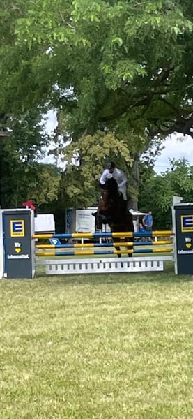For sale: German sport horse gelding – born in 2019 We are offering an elegant and versatile German sport horse gelding. Born in 2019, he impresses with an excellent pedigree. Standing at 173 cm (16.1 hh), he is a true talent in both dressage and show jumping. This dark bay gelding exhibits a balanced and eager-to-learn nature, is well-trained, and has a solid basic education. He was backed at age 4 and, after a few competition starts, spent the second half of summer on pasture. At ages 5 and 6, he competed appropriately in L and M classes, achieving several placings. He also convinced in the dressage arena, placing in a dressage riding horse class of A-level. His pleasant temperament makes him very even-tempered in handling; he is not spooky or overly curious. Thanks to his excellent riding qualities and character, he is suitable for ambitious leisure riders as well as for competitive sport. Please feel free to contact me for further information or if you are interested. Viewing and trial rides are possible by arrangement.