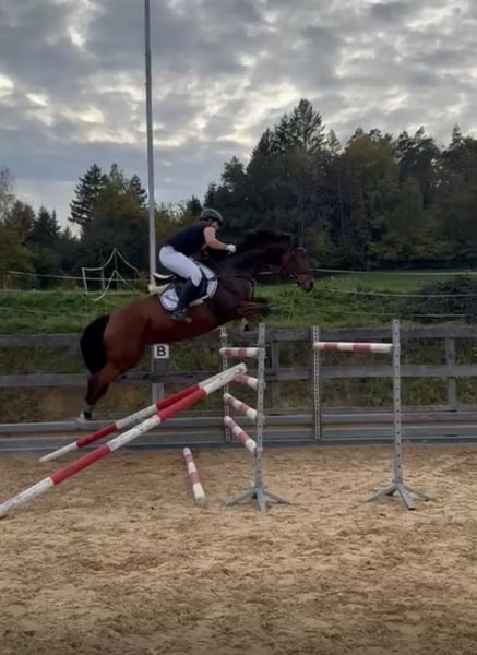 Dexter – Ehrgeiziger Springkünstler mit Perspektive für den großen Sport Wallach | 7 Jahre | Deutsches Sportpferd | ca. 1,66 m Abstammung: Dollar D'Or × Rodman Standort: 64720 Michelstadt Preis: 45.000€ Direkt von Züchter und absolut unverbraucht Dexter überzeugt mit Top-Einstellung, Rittigkeit und großem Vermögen – ein Sportpferd mit Zukunft, der jede Höhe angreift! Dieser charmante Wallach ist bereits A**-platziert (Springen A**, Springpferde A*) und zeigt im Training seine ganze Klasse: L-Parcours springt er sicher, einzelne Sprünge auch bereits auf S**-Niveau. Seine Erfolge hat er alle unter einer Amateurreiterin erreicht. Im Vordergrund steht die schonende altersgemäße Ausbildung! Bereits als Youngstar in der Aufbauphase beweist er seine außergewöhnliche Leistungsbereitschaft und sein Vermögen indem er im Freispringen mit Leichtigkeit und enormer Eigenmotivation 1,60 m übersprang. An den Hilfen sensibel, immer motiviert und mit viel Go ausgestattet, möchte Dexter seinem Reiter gefallen und greift jedes Hindernis mit großer Überzeugung an. Sein Ehrgeiz und seine Lernfreude machen ihn zu einem absoluten Partner für ambitionierte Reiter, die sportlich weiterkommen möchten. Mit diesen greift er jede Höhe ohne zu zögern an. Besonders hervorzuheben ist seine sehr schnelle, kraftvolle Grundgaloppade, die ihm nicht nur auf dem Turnierplatz, sondern auch in enge Wendungen und schnellen Ritten einen klaren Vorteil verschafft. Obwohl sein Herz eindeutig für den Springsport schlägt, ist Dexter hervorragend in der Dressur ausgebildet. Neben den basics wie Takt und Losgelassenheit in allen Grundgangarten, beherrscht er spielerisch die Galoppwechsel und die Seitwärtsgänge, das selbstverständlich auch in allen Grundgangarten. Auch in den hohen Versammlungslektionen, zeigt Dexter immer Engagement. Er zeigt Talent und Herz – und hat definitiv Potenzial bis in den hohen Springsport. Für Reiter, die hoch hinaus wollen – mit einem Partner, der immer alles gibt. Dexter bringt eine sehr gute große AKU mit sich. Video kann auf Anfrage gesendet werden.