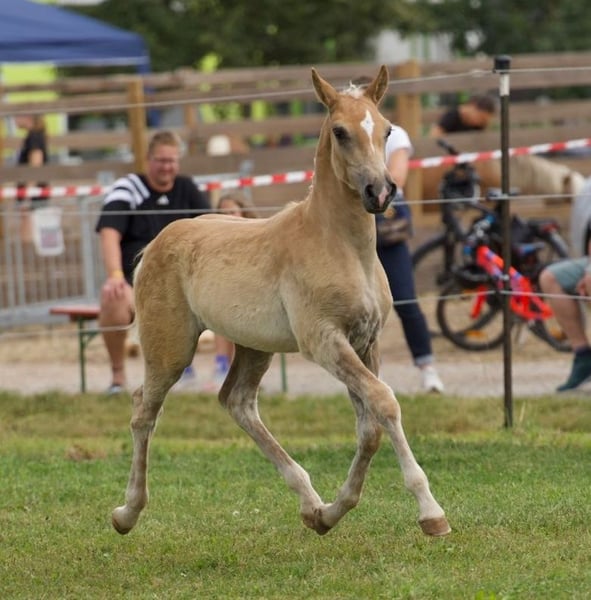 ✨ Never Stop SCH – Premium Edelbluthaflinger Colt with Champion Lineage & Exceptional Pedigree ✨ Born in 2025, Never Stop SCH impresses across the board: correct conformation, athletic type, expressive movement – and a pedigree that leaves no wishes unfulfilled. 🏅 Reserve Champion at the Franconian Foal Championship 2025 – his quality has already been officially recognized. 🧬 Top-Class Lineage Sire: Narcotic v. DSP E/BP Nakuri * Reserve Champion of the South German Edelbluthaflinger Licensing Modern, athletic, and expressive – a promising stallion with strong inheritance potential. Grandfather: BP/E/L/P DSP Nakuri A true flagship of Edelbluthaflinger breeding: * Winner stallion of the South German licensing * Performance test winner * Federal Champion in Driving & Reserve Federal Champion in Breeding * World Champion in Single Harness Dressage, multiple German & Bavarian driving champions * Champion of the 4- and 5-year-old German driving ponies * Numerous licensed sons and state premium mares, including top stallions and state winners * Recognized as the world’s best dressage Haflinger in driving 🌟 Dam: E/SP My Money SCH An outstanding elite and state premium mare with extensive performance and breeding record. Performance highlights (including): * Premium gold foal, Future Prize Champion mare, overall winner at the Verband mare show * Best registered mare in Franconia (2010) * State premium, finalist at the Landes mare show, participant in the Federal mare show * Winner of the mare performance test (dressage) * Overall reserve champion mare EH (2016) * Elite mare since 2022 Progeny: * Successful in competitive sport (dressage, eventing, Western) * Multiple winners and reserve winners at regional foal championships * Several winners and reserve winners at mare performance tests – their offspring stand for performance, character, and quality 🐴 Reliable handling – well-socialized from an early age Never Stop SCH was raised appropriately, regularly dewormed, halter-trained, and is shoe- and load-safe. He is very people-oriented, curious, and balanced in daily handling – ideal conditions for a smooth further development. 🐴 Never Stop SCH – Your Stallion Prospect with a Future A foal straight out of a picture book – with exceptional genetics, a promising presence, and a character that convinces. Perfect for breeding, sport, or demanding leisure riding.