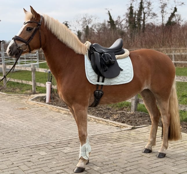 Te koop rechtstreeks van de fokker: een prachtige, elegante Edelbluthaflingerstute van 3,5 jaar oud, van Silbermond. Ze is in de zomer voorzichtig aangezad en wordt nu verder op dressuurgebied getraind. Ze is zeer braaf in de omgang, beschikt over goede gangwerk en is ijverig in haar werk. Moeder: prestatiegekeurde St.Pr. merrie van Almstürmer. Ze is smidvriendelijk, laadt gemakkelijk in de trailer, gevaccineerd en haar tanden zijn in de zomer verzorgd.