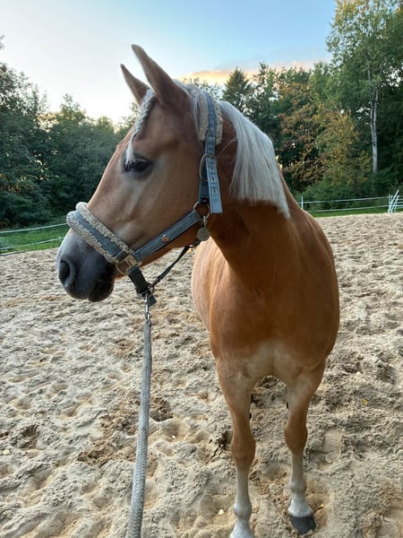Für meine 7-jährige Edelbluthaflinger-Stute (Stockmaß ca. 1,50 m) suche ich einen lieben, konsequenten Menschen, der sie versteht, fördert und ihr Sicherheit gibt. Sie ist ein ganz besonderes Pferd – intelligent, sensibel und mit viel Ausdruck, dabei aber auch mit einer eigenen Meinung ausgestattet. In den richtigen Händen kann sie zur echten Seelenpartnerin werden. Charakter & Wesen Diese Stute ist menschenbezogen, aufmerksam und sehr klug. Sie bindet sich ehrlich, aber nur an jemanden, der klar, ruhig und fair ist. Sie braucht keinen Chef, sondern einen Partner, dem sie vertrauen kann – einen Menschen, der ihr mit Geduld und liebevoller Konsequenz zeigt, woran sie ist. Sie ist kein Anfängerpferd, denn sie hinterfragt und möchte verstanden werden. Bekommen hat sie bisher nicht den Menschen, der ihr die nötige Struktur gibt – deshalb sucht sie jetzt ihren Herzensmenschen, nicht irgendeinen. ⸻ Arbeit & Entwicklung Sie ist freizeitmäßig geritten, zeigt aber unter dem Sattel je nach Tagesform, ob sie mitarbeiten möchte oder nicht. Mit klarem Konzept, Bodenarbeit und regelmäßiger Förderung ist sie ein Pferd, das man gewinnen kann statt „durchsetzen“ muss. Für jemanden mit Gefühl, Geduld und Freude am fairen Training kann sie ein wunderbarer Freizeitpartner werden – im Gelände, auf dem Platz oder in der weiteren Ausbildung. Sie ist unerschrocken und geht auch unabhängig ins Gelände. Sie hatte ein Fohlen und war dabei eine souveräne, instinktsichere und liebevolle Mutter. Ihr Sohn ist auch bei uns . Die zwei hängen sehr aneinander und können auch zusammen verkauft werden. Gesundheit & aktueller Zustand • gesund & robust • herdentauglich • momentan zu gut im Futter, daher Training & Management nötig • schmiede- & verladefromm Wohin soll die Reise gehen? Ich wünsche mir für sie einen liebevollen, konsequenten und erfahrenen Platz, an dem sie nicht „funktionieren“ muss, sondern ankommen darf und jemand Spaß daran hat, ihr Potential mit Zeit und Herz herauszuholen. Kein Verkauf an Reitschulen oder Händler. Sie braucht den EINEN Menschen . Nur mit Schutzvertrag und Rückkaufvereinbarung. Sie geht nur wenn alles passt . Sie kann auch gerne gegen geringes Entgelt hier im Stall bleiben . Auch in VP. Sie liegt uns sehr am Herzen . Gerne auch ein längeres Kennenlernen