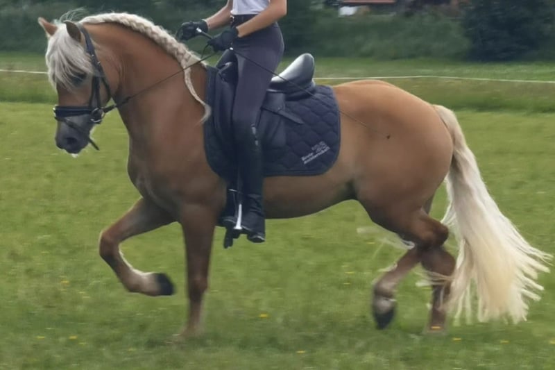 Dieser bildschöne, bewegungsstarker, Anfang März geborene Edelbluthaflingerwallach (ox 9,9%) ist für alles offen. Er hatte 2 schöne Alm Jahre in einer Junghengst Erde und ist mit 2,5 Jahren gelegt worden. Zähne sind kontrolliert und Wolfszähne entfernt. Er ist professionell angeritten und hat eine PSSM1 1 freie Abstammung. Sein derzeitiges Stockmass ist 146 cm, somit bleibt er im Ponymass. Tetanus, Influenza und Herpes geimpft. Sein Vater ist der Elitehengst Bundesprämienhengst Schampus. Reservesieger der Körnung 2016 und der Hengstleistungsprüfungsieger 2018 mit der Endnote 8,42 Interieur 8,83 Reiten 8,18 Fahren 8,55. Sein Vollbruder ist der springbetonter Bundesprämiensiegerhengst Secco 2023 in Münster. 2020 wurde er in München gekört und 2022 ging er in Moritzburg als Sieger der Edelbluthaflinger mit einer Endnote von 8,56 hervor. Interieur 8,61 Reiten 8,42 Fahren 8,80. Die Mutter ist die Leistungsprüfungsiegerin 2016 auf Station in München mit 8,03. Der Mutter water ist kein Geringerer als der Elitehengst, fahrbetonter Bundesprämiensiegerhengst DSP Nakuri.