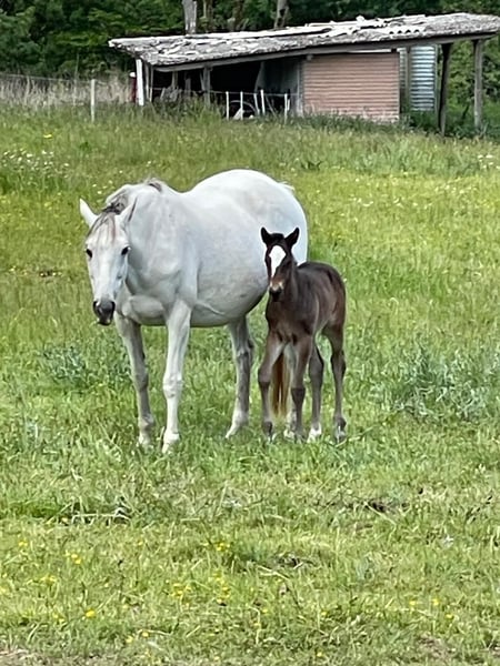 Sifter, a gentle soul, is looking for a loving home with caring people. She is a mare with a spirited temperament, yet she remains balanced and never ill-tempered. Sifter previously raced in the USA. Until recently, she had a foal at her feet. She is now ready to be re-started under saddle. Before her foal, she competed in jumping events up to A-level. Sifter is an English Thoroughbred mare. Her sire: Henrythenavigator (USA) Her dam: Always Auditioning (USA) Sifter has full pedigree papers and is registered in the studbook. She can also be used for breeding. She is a loving and attentive mother. Sifter is familiar with the stable and is currently living in an open stall in a mixed herd.