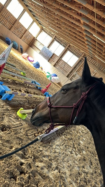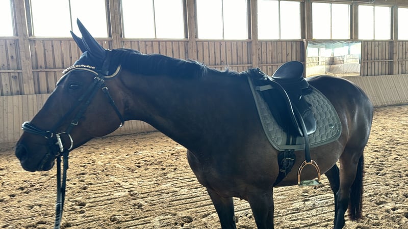 With a heavy heart, I am seeking a new home for my 14-year-old, approximately 16.1 hh Thoroughbred mare, "You'll Never Run Alone" (called Quenny). Due to personal circumstances (starting a family) and the resulting lack of time, I can no longer give her the attention she deserves. Quenny is experienced both under saddle and on the ground. In daily handling, she is well-behaved and confident. She handles desensitization exercises calmly and unphased. She is very human-oriented, though she prefers a small number of stable, trusted handlers. Frequent change of riders can unsettle her, so she may test her boundaries initially. Therefore, I am looking for a person who is empathetic, experienced, and calm to provide her with the security she needs. Quenny is not suitable for beginners or insecure riders. Due to time constraints, Quenny is currently mostly worked from the ground. Therefore, her training should initially focus on a healthy, varied fitness program to facilitate her reintegration into full work. With thoughtful promotion, her riding potential can certainly be further developed. She is generally accustomed to hacking out in open terrain. She is curious and interested in her surroundings and always manageable on the lead. However, due to my limited time, she currently lacks some routine during rides. With a confident rider and more experience, she will become a lovely leisure partner. The mare is shoe- and loading-safe and currently barefoot. For very rocky paths, she wears front hoof boots. She has been regularly vaccinated and dewormed. Dental checks are performed annually as standard. In interactions with other horses, she is consistently open and socially compatible. She currently lives peacefully in a mixed herd with a gelding and four other mares. At night, she is housed in her own box; during the day, she enjoys paddock or pasture turnout. For the future, I wish for her to have a home where she can continue to enjoy plenty of turnout and social contact throughout the year. If Quenny has piqued your interest, I look forward to hearing from you. We can happily arrange a date for a personal meeting!