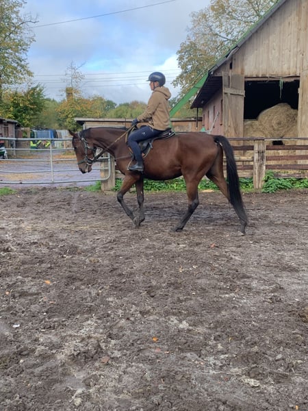 Verkaufe elegante Englische Vollblut-Stute – Perfekt für Vielseitigkeit! Zum Verkauf steht eine wunderschöne braune Stute, geboren im Jahr 2021. Mit einem Stockmaß von 165 cm vereint sie Größe und Anmut. Als echtes Englisches Vollblut überzeugt sie durch ihre Athletik, Beweglichkeit und Lernfreude. Diese vielseitige Stute ist ideal für den ambitionierten Reiter, der Wert auf Vielseitigkeit legt. Sie zeigt viel Potenzial in verschiedenen Disziplinen und ist sowohl im Gelände als auch im Dressur- und Springreiten fit. Bei Interesse oder weiteren Fragen stehe ich gerne zur Verfügung. Ein persönliches Kennenlernen ist jederzeit möglich!