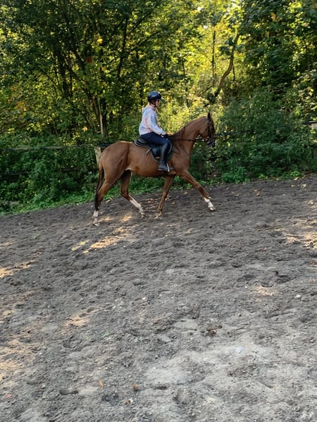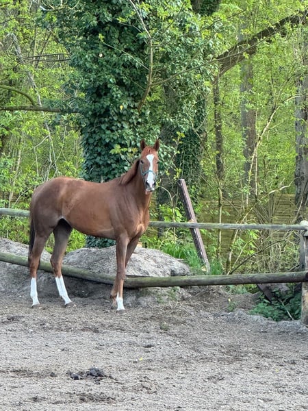 IKONE Her name says it all. A fine, sensitive, and thoughtful thoroughbred mare who always wants to do everything right. One of the photos shows her as a foal. She is in excellent health, sound on her legs, and has no allergies. A stunning mare for a lovely girl? Very people-oriented. A horse that, once trust is established, will not only go along with everything but will also stand by you through thick and thin as a partner. IKONE is also special in terms of pedigree. Her father is the Australian stallion COUNTERATTACK (leading stallion in Europe), and even more remarkable: her mother is a full sister to the Group I winner and stallion INTENDANT, who is also successful in warmblood breeding due to his rideability.