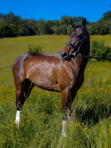 Opportunity to acquire a beautiful and elegant Thoroughbred mare! Main features: - Sex: Mare - Year of birth: 2020 - Color: Dark bay - Height: 15.7 hh - Breed: Thoroughbred - Discipline: Dressage This mare combines beauty, nobility, and talent, making her perfect for riders seeking a high-level mount for competitions or for pleasure in dressage. She has a very calm temperament and an excellent disposition for training. For more information and inquiries, please don't hesitate to contact me.