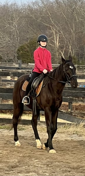 "AVAILABLE ON ONLINE HORSE AUCTION AT www DOT PlatinumEquineAuction DOT com BIDDING OPEN NOW thru SUNDAY | APRIL 12TH! *Final price will be determined on auction site* CONSIGNOR CONTACT INFO: Laurie Moore 410-292-9434 LOCATION: Haymarket, VA Noble is a 2011 16.1h jet black thoroughbred gelding. He had an extensive racing career until making his way out to Virginia and landing in a lesson program. He is a barn favorite with his silly personality and need for daily snuggles. Noble is a great low level packer, going to numerous dressage schooling shows and lower level jumping shows. Despite being in a predominantly english program, he easily switches to western! Noble rides both in and out of the arena with no problem. He is currently being ridden by a junior, schooling first level movements. Stands for farrier and vet, trailers perfectly. Located in Northern Virginia.