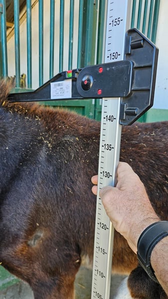 Catalan donkey Introducing a charming and promising young stallion donkey, born in 2024. This striking black donkey stands at a height of 144 cm, making him an ideal size for various riding and breeding purposes. His well-bred lineage ensures excellent qualities for future generations and reliable temperament. This well-bred stallion displays a strong, healthy build with a sleek, shiny coat that highlights his fine conformation. His confident stance and alert expression reflect his good health and vitality. age: 31082024