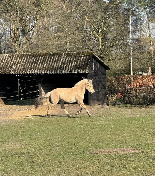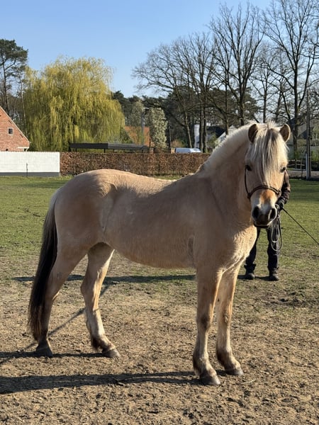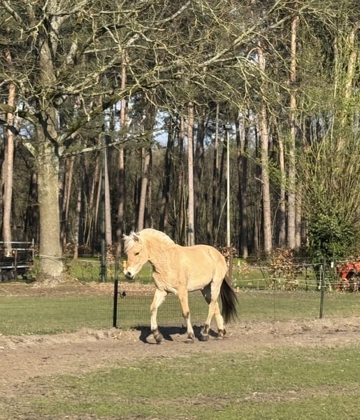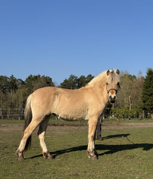 Te koop: prachtige 2-jarige Fjord merrie (°23/04/2024) met een huidige schofthoogte van ca. 1.43m. Deze jonge dame combineert een correcte bouw met een uitstekend en betrouwbaar karakter. Ze is zeer braaf in de omgang, vriendelijk naar mensen toe en komt steeds spontaan aangelopen in de weide — een echt plezier om mee te werken. Ze is reeds netjes stuurbaar aan de lange leidsels en toont zich leergierig en werkwillig, wat haar een mooie basis geeft voor verdere opleiding. Interessante afstamming: Vader: Ruben Van de Landweg (klasse A) Moeder: Taliena van ’t Vene (vader: Niko – modelprestatie)
