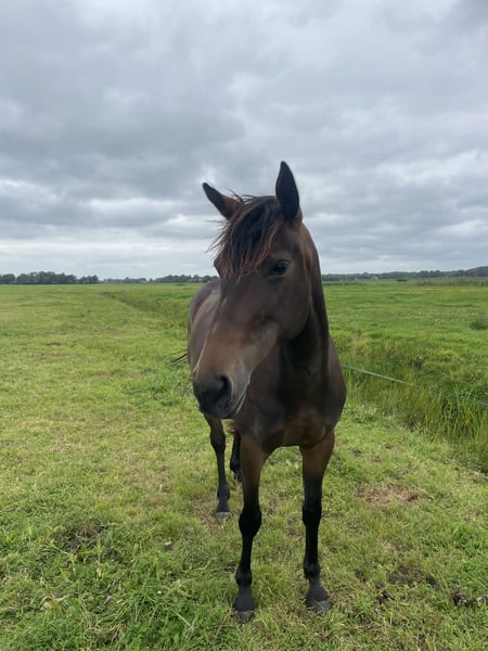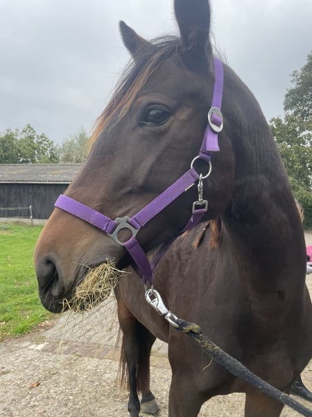 Met pijn in ons hart zijn wij op zoek naar een nieuwe, passende plek voor Coco. Coco is een Dravers merrie, geboren in maart 2021, met een stokmaat van ca. 1.60 m. Wij hebben haar nu twee jaar in ons bezit. Ze is zadelmak en wordt regelmatig vanaf de grond met haar gewerkt. Onder het zadel loopt ze momenteel in stap; draf vindt ze nog spannend en heeft hierin tijd, rust en vertrouwen nodig. Coco is een ontzettend lieve, leergierige en werkwillige jonge merrie. Wanneer ze zich op haar gemak voelt, doet ze enorm haar best en pakt ze nieuwe dingen goed op. Ze is echter gevoelig en snel onder de indruk. In spannende situaties kan ze proberen te vluchten, waardoor ze niet geschikt is voor een onervaren ruiter. Wij zien Coco het beste tot haar recht komen bij een ervaren, daadkrachtige eigenaar die rekening houdt met haar gevoelige kant en die haar verder wil opleiden en de tijd heeft om dagelijks met haar aan de slag te gaan. Iemand die haar vertrouwen verder opbouwt en haar de begeleiding kan geven die ze nodig heeft. Een fijn en blijvend thuis is voor ons belangrijker dan een snelle verkoop. Handelaren hoeven niet te reageren. Bij serieuze interesse graag een bericht met wat informatie over jezelf en wat voor plek je Coco kunt bieden.