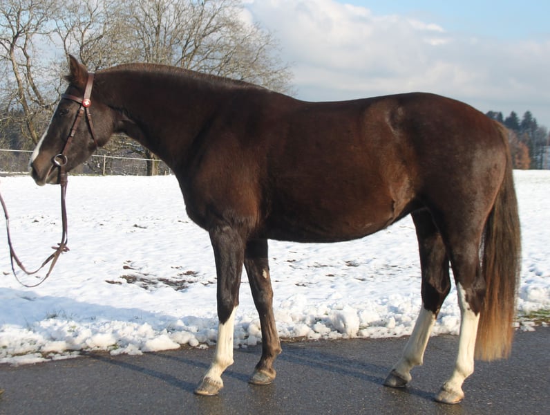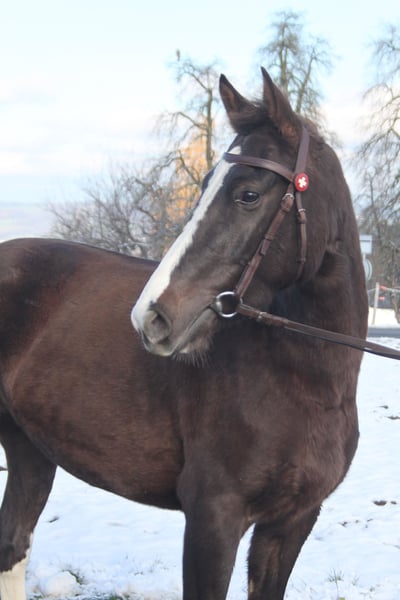 Die Stute ist sehr ruhig, brav und abgeklärt im Umgang. Sie wird für geführte Ausritte im Gelände eingesetzt - hier kann sie von unerfahrenen Kindern, Jugendlichen und Anfängern in der Gruppe geritten werden. Auch alleine ausreiten kennt sie bestens. Aufgrund ihrer ruhigen Art können wir sie gut als Therapiepferd vorstellen. Auch die Arbeit an der Longe, auf dem Sandplatz oder an der Kutsche - sie ist angenehm motiviert und mit Freude mit dabei. Die Freibergerstute ist absolut verkehrssicher, brav beim Hufschmied, problemlos zum verladen. Sie ist sehr sozial - egal ob Wallache oder Stuten, Ponys oder Pferde - sie kommt mit allen gut klar. Die Stute ist auf einem lebhaften Landwirtschaftsbetrieb und viel im Gelände unterwegs: grosse Traktoren und Maschinen, spielende Kinder, Kühe und Schafe, freilaufende Hühner...dies allem begegent sie ohne grosse Mühe. Für Infos und Preisauskünfte etc gerne per Telefon.