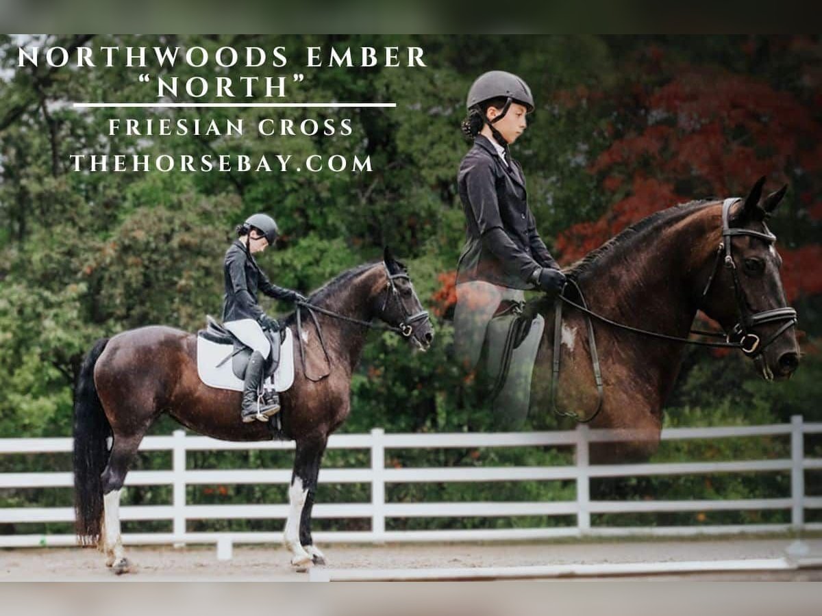 OPEN BIDDING ON THEHORSEBAY,COM. SALE ENDS ON 02/05. More information is available on the website, including an UTD vet inspection, Coggins, video, images, and the owner's contact information to ask questions, request information, or make arrangements to come to visit. 2014 Registered FSHR Mare | Friesian Cross | 15.3hh North is a stunning 2014 Friesian Cross mare, registered with the Friesian Sport Horse Registry (FSHR) and standing at 15. 3hh. With her flashy color and four white socks, she’s not only a head-turner but also an absolute dream to ride. Renowned for her exceptional safety and reliability, North is the perfect partner for riders of all ages and experience levels. This summer, a talented 10-year-old rider successfully showcased her in Intro C, a testament to her gentle nature, adaptability, and steady demeanor. Currently schooling at 1st level dressage, North is progressing beautifully and shows a confident, willing attitude in every ride. Her smooth, comfortable gaits make her a joy to ride, whether in the arena or out on the trail. Speaking of trails, North truly shines here—she’s an absolute dream, handling new environments with calm confidence. With her solid foundation, remarkable temperament, and eagerness to please, North is ready to become a cherished partner for any rider looking to advance their skills or enjoy a trustworthy, steady companion. Don’t miss the opportunity to meet this exceptional Friesian Cross mare—she’s one of a kind!