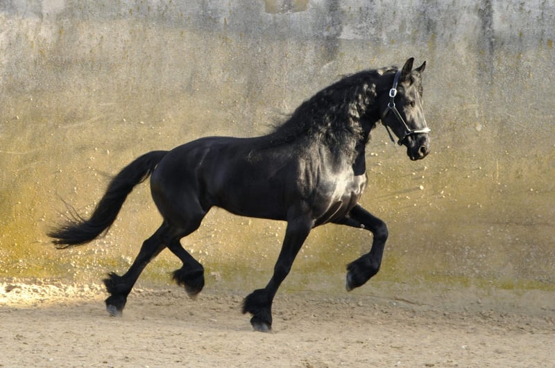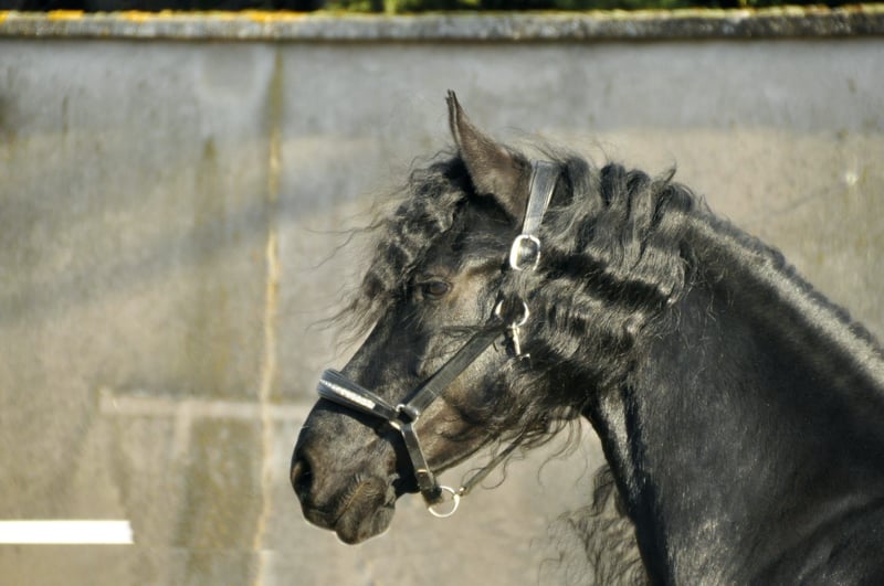 A very sweet and tall Friesian mare from the Netherlands with a beautiful, long mane! She has correct conformation, a lovely small head, and her temperament is simply a dream. She does not behave at all like a typical mare, but rather as a very pleasant horse. Extremely gentle in handling – she is confident and self-assured. Under saddle, she demonstrates a nice work ethic and always cooperates well. She has been ridden in the three gaits and has also been driven in a carriage, familiar with road traffic. If you are looking for an extraordinary and unique mare, here she is. She had her first foal this year, which was very uncomplicated, and she proved to be a very loving mother. Please contact only by phone for inquiries.