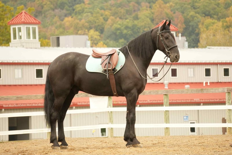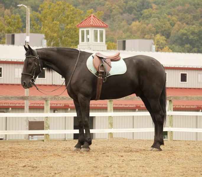 ⚜️𝐓𝐇𝐄 𝐅𝐀𝐋𝐋 𝐇𝐄𝐑𝐈𝐓𝐀𝐆𝐄 𝐂𝐋𝐀𝐒𝐒𝐈𝐂⚜️ Happening now thru MONDAY | NOVEMBER 3rd - Available EXCLUSIVELY on HorseBid's website! For more details and to register visit: www.Horsebid.com CONSIGNOR CONTACT: MW Equine Stables LLC 330-365-0233 LOCATION: Fresno, OH BREED: Friesian Sporthorse (Friesian/Percheron/Morgan) REGISTERED: Yes REGISTERED NAME: Rizzo COLOR: Black HEIGHT: 16.3 AGE: 10 GENDER: Gelding Rizzo Is a total dream horse that will get heads turning no matter where you take him. He is a 16.3 2015 Friesian Sporthorse (Friesian/Percheron/Morgan) gelding. He rides English and Western.. Rizz rides great on the trails as well as the arena.. We ride great by himself as well as with a group.. Rizzo has no funny business and enjoys having a job and is extremely willing. He has a solid W/T/C both directions. He has a ground covering stride and pretty movement. strives to please and has work ethic. He is schooling First/Second level. Scoring First level tests in the 70’s. Jumping 3ft courses with changes, with plenty of scope. He has no buck rear or kick. He loves to trail ride and crosses all obstacles. He had been Fox hunted frequently and hunted first and second with no issues. On the trail, Rizz will happily go in the front or back of the pack. This brave boy is the first one into the water, be it crossing the stream, or going for a swim in the lake. He’s good in a group with horses riding up close behind him and doesn’t get upset. In the barn, Rizz has no bad stall habits He picks up all four feet and is good for the farrier. He stands to groom, clipped and saddled. He never causes problems in the pasture and gets along with everyone. He is a gentleman no matter the situation I trust him to take care of any level rider. Has been lightly used in lesson program and is my guest/friend/family horse for any trail or outing with inexperienced riders. Located in Fresno Ohio, Call or text 330-365-0233