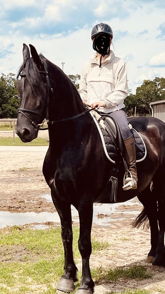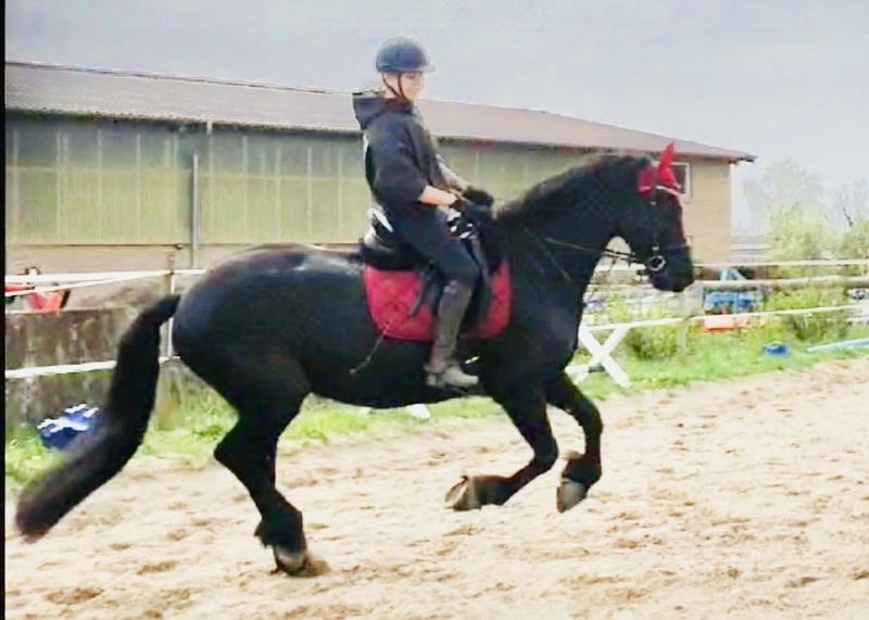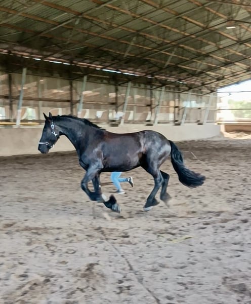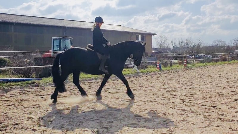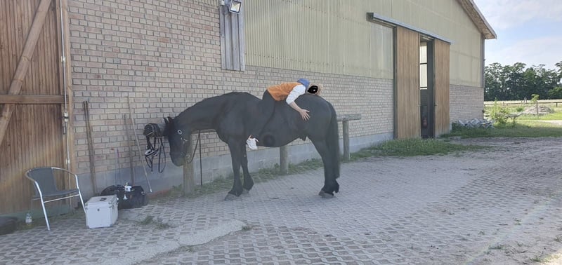Zum Verkauf steht ein liebenswerter, umgänglicher, 13 jähriger Friesenwallach, mit eindrucksvollem Erscheinungsbild und einem ausgeglichenen, menschenbezogenen Charakter. Gondor wird Englisch geritten und kennt sowohl Platz als auch Hallenarbeit. Er zeigt sich stets lernwillig und motiviert. Auch im Gelände ist er ein sicherer Begleiter. Ob allein oder in der Gruppe. Er bleibt ruhig, aufmerksam und zuverlässig. Die Boden- und Freiarbeit macht im genauso viel Spaß. Er arbeitet engagiert mit und möchte für seinen Menschen alles richtig machen. Momentan steht der Hübsche tagsüber auf einem Wallachpaddock und nachts in seiner Box. Er kennt aber auch Offenstallhaltung und fühlt sich dort ebenso wohl. Er wird ausschließlich in reine Wallachherden abgegeben, da er in gemischter Herde, Hengstverhalten zeigt. Reine Boxen- oder Einzelhaltung ist ausgeschlossen, da für ihn Sozialkontakte der Herde und genügend Platz zum Spielen sehr wichtig sind. Die Integration in eine neue Herde, verlief bisher immer unkompliziert. Zudem ist er schmiede- und verladefromm. Die Abgabe an Händler oder Schulbetriebe sind ausgeschlossen. Sein Equipment kann mit übernommen werden. Bei ernsthaftem Interesse oder weiteren Infos, freue ich mich über persönliche Nachfrage.