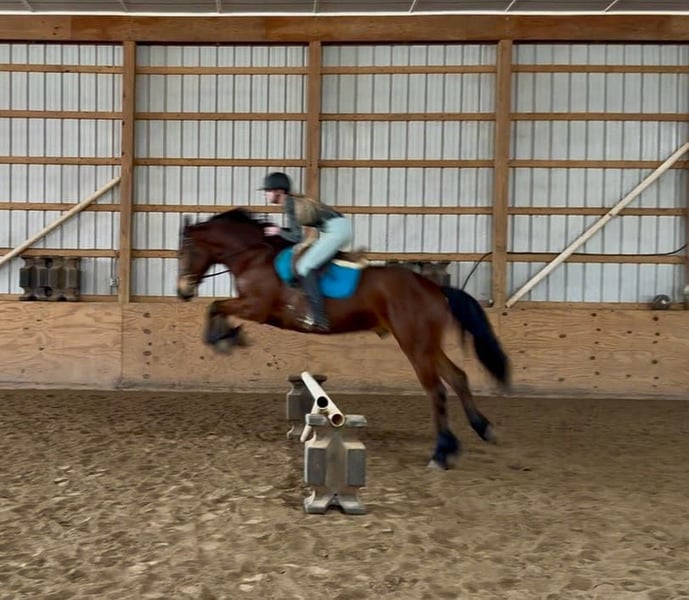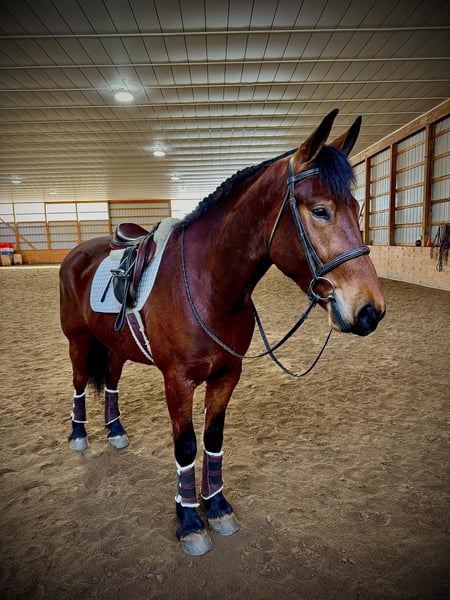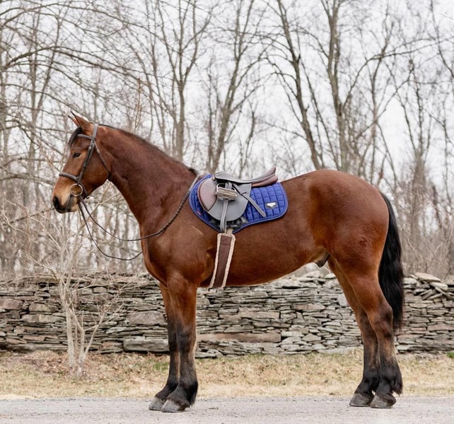 ONLINE-AUKTION Geben Sie Ihre Gebote ab unter www.PlatinumEquineAuction.com Startgebot 3500 $ Auktion endet am 20. April 2025 Brauchen Sie einen neuen Sattel? Schauen Sie sich White Rock Saddles auf unserer Website oder Facebook an! Suchen Sie Ihr nächstes Sportpferd für Vielseitigkeit, Dressur, Equitation, Fuchsjagd, 3-Ring und vieles mehr... die Möglichkeiten sind endlos mit diesem hier. Cruise ist ein 3-jähriger Wallach, misst 16hh und hat eine unglaubliche Substanz und Knochenstärke – uns wurde gesagt, dass er ein Friesen x Morgan Mix ist, aber er hat keine Papiere, daher nenne ich ihn für diese Anzeige einen Mischling. Dieser Wallach ist RUHIG und vernünftig weit über sein Alter hinaus, praktisch unerschütterlich. Cruise hat einen unglaublichen Start in seine Karriere, er reitet Schritt, Trab und Galopp, nimmt beide Galoppleads und hat sehr einfache Übergänge nach unten und ein großartiges Whoa! Cruise lernt, sich schön in die Anlehnung zu versammeln und bewegt sich weich in Ihren Händen, weicht in beide Richtungen und dreht sich auf der Hinterhand, er geht rückwärts. Er wurde viel im Gelände geritten und ist allein oder in der Gruppe sehr ruhig und angenehm, durch Felder und auf Wegen. Er fährt auch mit Leichtigkeit einspännig! Cruise steht ruhig angebunden, ist geduldig beim Putzen und Baden und gut für den Tierarzt und Hufschmied. Er lädt sich in jeden Anhängertyp und fährt ruhig, er entlädt sich an neuen Orten ohne Probleme und benötigt keine Bodenarbeit oder Vorbereitung, einfach satteln und losreiten. Cruise ist gesund ohne vorherige medizinische Vorgeschichte oder Verletzungen – alle potenziellen Käufer sind eingeladen, auf eigene Kosten eine tierärztliche Untersuchung vor dem Kauf durchführen zu lassen. Wenn Sie Hilfe bei der Organisation des Transports benötigen, zögern Sie nicht zu fragen, wir teilen Ihnen gerne unsere Liste der Transportdienste mit. Standort: Everett, PA. Kontaktieren Sie Benny Hall unter 814-979-2046 bei Fragen. ONLINE-AUKTION Geben Sie Ihre Gebote ab unter www.PlatinumEquineAuction.com Startgebot 3500 $ Auktion endet am 20. April 2025 Brauchen Sie einen neuen Sattel? Schauen Sie sich White Rock Saddles auf unserer Website oder Facebook an!