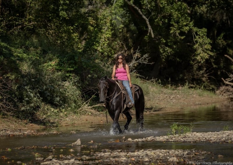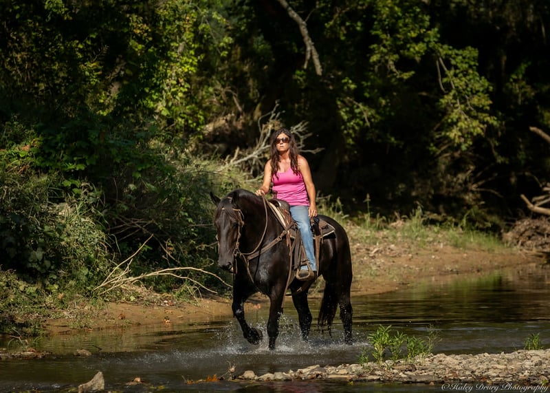 ♦️ 𝐭𝐡𝐞 𝐀𝐌𝐄𝐑𝐈𝐂𝐀𝐍 𝓕𝓪𝓵𝓵 𝓒𝓵𝓪𝓼𝓼𝓲𝓬 ♦️ Happening now thru MONDAY | OCTOBER 20th - Available EXCLUSIVELY on HorseBid's website! For more details and to register visit: www.Horsebid.com CONSIGNOR CONTACT: Jamie Thomason 270-772-1706 LOCATION: Auburn, KY BREED: Friesian Cross REGISTERED: Yes REGISTERED NAME: BIRCH FARM TED COLOR: Black HEIGHT: 16.3 AGE: 4 GENDER: Gelding The definition of equine luxury — a striking, jet-black, gelding with the size, style, and presence to turn heads! ROYCE is a 4 yr old, 1/2 Friesian, 1/4 Morgan, 1/4 Percheron Gelding registered in the Friesian Heritage Horse association, standing at 16.3 hands tall. Royce walk-trot-canters both directions, picks up the correct leads. Transitions smoothly, moves laterally, light in the bridle, & stops from your seat or a simple “whoa”. Royce is always willing, eager to learn, & forgiving making him suitable for a variety of riders and disciplines. No saddle, no bridle, no problem! Climb on and enjoy a leisurely stroll. Royce still stops, still steers, & still walk, trot, canters with nothing more than leg aids & a rope around his neck! On the trail, Royce hacks out alone or in a group. Content to lead or follow. Crosses water, goes up & down inclines, over bridges, through wooded paths, and across open pastures. Royce is easy to load, haul, and is unbothered in new settings. Myself, my daughter & her friends have taken him along to State & National Parks on day rides, he is unbothered by wildlife, hikers, and other passing riders. Always a fun time! On the farm, Royce has worked along stock dogs to move cattle. He’s ridden along side tractors, combines, atv’s, and other machinery without issue. He is traffic safe, gun safe, unbothered by waving tarps, and proudly carries the flag. Safe & seasoned around kids, dogs, cattle & other livestock. At home, Royce is exceptional. A gentleman on the ground, respectful on the lead, stands tied, cross tied, and is a very personable horse. If Royce is in the pasture, he’ll follow right behind me to the barn. My toddler is typically along for chores and Royce is always careful. He lowers his head for my son give him a pat and is extremely tolerant of a wild little boy in the barn. Royce has zero stall vices, always neat & tidy. Also perfectly content outside alone or in a mixed herd. Whether you're looking for a reliable partner for everyday riding or a head-turner with a calm, willing attitude, Royce is the kind of horse you don’t come across often. A true gentleman ready for his next adventure! If you would like to meet Royce prior to adding him to your family or have any other questions, feel free to reach out!