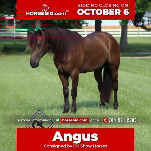 🍂 Line-up de tous les stars d'automne 🍂 En cours jusqu'à LUNDI | 6 OCTOBRE - Disponible EXCLUSIVEMENT sur le site d'HorseBid ! Pour plus de détails et pour vous inscrire, rendez-vous sur : www.Horsebid.com CONTACT DU VENDRE : CK SHOW HORSES 704-591-2980 LIEU : Selma, Caroline du Nord ÉLEVAGE : Friesian / Halflinger INSCRIT : Non COULEUR : Noir TAILLE : 14 mains ÂGE : 5 ans SEXE : Hongre Hongre de 5 ans, mesurant 14 mains, de race Friesian / Halflinger. Angus est l’un des chevaux les plus sympas que nous ayons eus ! Il est très calme à monter et agréable à côtoyer. Il peut s’orienter vers de nombreuses disciplines et réaliser divers exercices : saut d’obstacles, dressage, poney de ranch, randonnée, et bien plus encore ! Il ne refuse jamais rien. Facile à ferrer, couper, charger et transporter. Si vous cherchez un poney polyvalent ou souhaitez apprendre, Angus est le cheval qu’il vous faut. En bonne santé et sans ferrure.