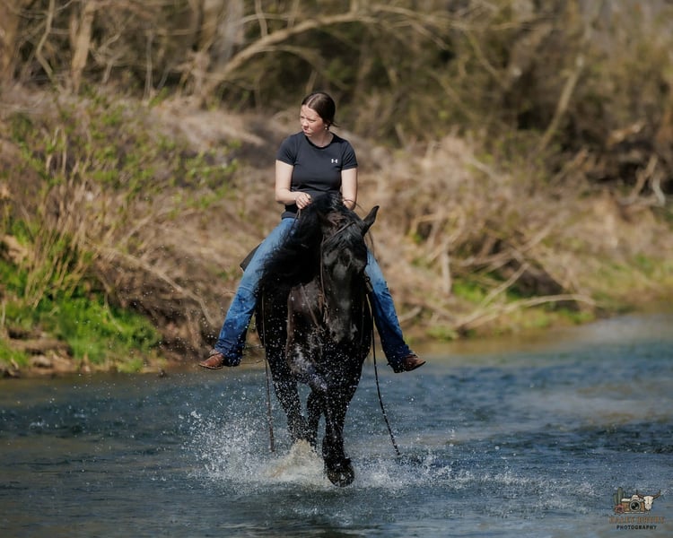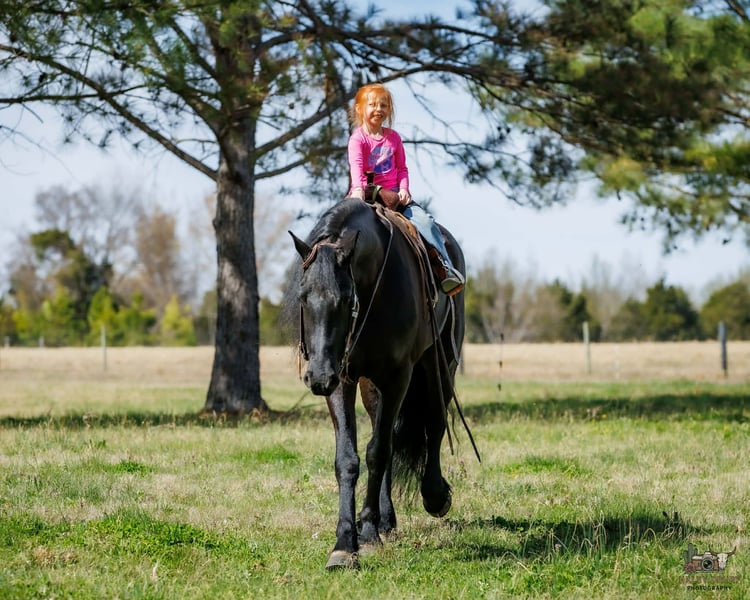 🌟𝑨𝒑𝒓𝒊𝒍 𝐀𝐋𝐋 𝐒𝐓𝐀𝐑 𝐋𝐈𝐍𝐄𝐔𝐏🌟 Happening now thru MONDAY | APRIL 6th - Available EXCLUSIVELY on HorseBid's website! For more details and to register visit: www.Horsebid.com CONSIGNOR CONTACT: Jamie Thomason 270-772-1706 LOCATION: Auburn, KY BREED: Friesian/Percheron Cross REGISTERED: No COLOR: Black HEIGHT: 16.2 AGE: 6 GENDER: Gelding Kind, quiet, and exceptionally dependable. The kind of horse that gives you confidence from the very first ride! Family friendly & lesson program suitable. Arthur is a 6yr old, Friesian/Percheron Cross gelding, standing 16.2 hands. Arthur is pleasure to own. Very personable, patient, and well mannered. He’s happy to greet you at the gate. Enjoys countless grooming sessions. A horse that’s just easy to love! Arthur is very well trained, proven safe, and continues to be enjoyed by a variety of riders. Comfortable at the walk, trot, and canter with smooth, easy transitions. Travels both directions on the correct lead, moves off leg pressure, pivots, and two tracks. He has been trained to “pick you up” at the mounting block & will lay down from the ground or from his back when cued. Arthur can even be ridden completely tackless with leg/seat cues & voice commands! Arthur has traveled off property to various arenas & out on the trail. Drives both single & double, down the road & in to town. Easy to load & haul. He hacks out alone or in a group, and is not herd bound. Confidently crosses water, natural obstacles, sure-footedly navigates uneven terrain, goes up and down inclines, across bridges, & is traffic safe. Arthur remains the same reliable partner even with time off. You get the same horse every time you saddle him up. Whether you need a safe and steady partner for the kids, a dependable arena horse, or an honest trail companion, Arthur checks every box! Truly one of a kind, he offers the kind of heart, mind, and consistency that make him not just a horse, but a lifelong partner and a true friend. Arthur sells current on all cares. If you would like to meet Arthur or have any additional questions prior to making him a part of your family, feel free to reach out! PPE’s welcome & we can assist in arranging transportation to anywhere!
