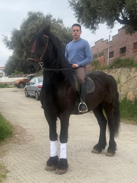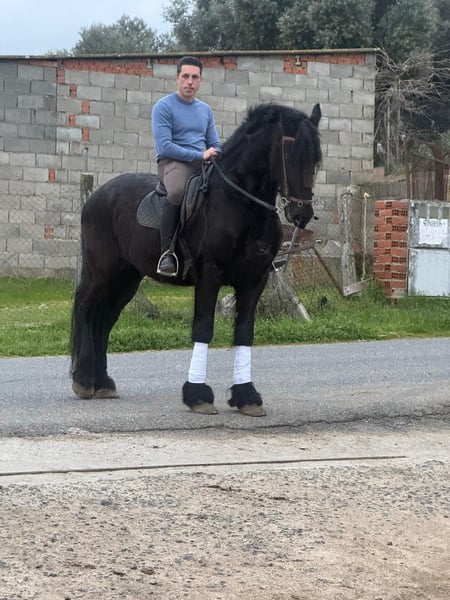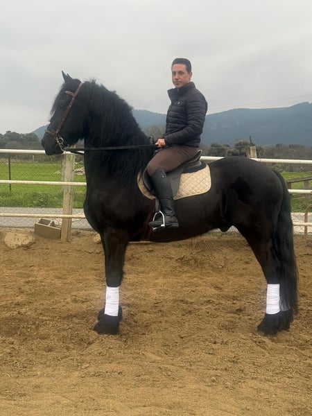 Se vende caballo frisón puro, montado y en pleno trabajo. Ejemplar de gran belleza, con movimientos amplios, elegantes y muy expresivos, propios de la raza. Destaca por su carácter noble, equilibrado y su buena disposición al trabajo, siendo apto tanto para jinetes aficionados como para niveles más avanzados. Ideal para doma, exhibiciones o disfrute. Caballo completo, con presencia y calidad.