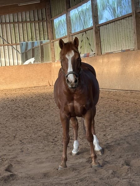 Haflinger-Quarterstute – Vielseitige Begleiterin mit Springtalent Diese charmante Haflinger-Quarterstute wurde im Jahr 2013 geboren und besticht durch ihr freundliches Wesen und ihre vielseitigen Fähigkeiten. Mit ihrem charakteristischen Fuchsfell und einem Stockmaß von 148 cm ist sie die ideale Partnerin für Reiter, die Wert auf eine zuverlässige und gut gerittene Begleiterin legen. Sie verfügt über eine solide Grundausbildung im Springen und zeigt sich in diesem Bereich äußerst talentiert. Ihre springbegeisterte Art macht sie zu einer vielversprechenden Partnerin für den Freizeit- und Turnierreitsport. Trotz ihrer Größe ist sie kräftig gebaut und besitzt eine ausgeglichene, ruhige Art, die sie auch für weniger erfahrene Reiter geeignet macht. Diese Haflingerstute ist gesund, gut gepflegt und regelmäßig durchgecheckt. Sie ist freundlich im Umgang, sowohl auf dem Paddock als auch beim Reiten, und lässt sich gut an den Zügel nehmen. Mit ihrer angenehmen Art und ihrem springbegeisterten Temperament ist sie eine wertvolle Ergänzung für jeden Reiter, der eine zuverlässige und talentierte Springpartnerin sucht. Bei Interesse oder weiteren Fragen stehe ich gerne zur Verfügung. Ein persönliches Kennenlernen ist jederzeit möglich. Fürs Probereiten erheben wir eine Gebühr von 30,-€, die beim Verkauf abgezogen wird.