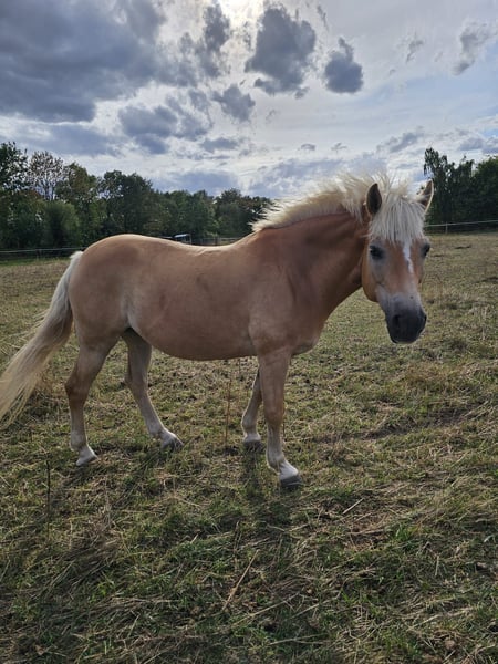 Fieke - a stunning Haflinger mare, born in 2012, with a height of approximately 150 cm. She is registered in the Stud Book I of the Pony Association of Hanover and has an OX percentage of 0.000%. Her correct conformation, health, and friendly character make her a versatile mare, well-suited for both breeding and as a reliable leisure partner. She has been regularly dewormed and vaccinated, osteopathically examined (with no findings), and her teeth have recently been done. Fieke is familiar with both box and pasture housing and is accustomed to herd living. She always behaves well in handling, is good with the farrier and loading, and is reliable with the veterinarian. She is also social and balanced in contact with other horses. In her interactions with people, Fieke is very affectionate, friendly, and curious. She is open-minded, eager to learn, attentive, and brings a lot of motivation - traits that are also evident under saddle. Fieke is well-ridden, behaves well in the arena as well as in the field, and has good, elastic basic gaits. She has successfully passed her performance test and is also familiar with groundwork. Breeding-wise, Fieke is particularly interesting: she comes from a very good lineage, is a great mother, and is always friendly towards other foals. Currently, she is in foal for 2026 by the stallion Nashua, a performance-oriented representative of the rare N-line, with 0.000% OX percentage. Nashua is sired by Liz./Narkas and is out of a Tyrolean elite mare by Liz/Stilton. Fieke is an absolutely lovable, versatile mare with a lot of potential and heart - ideal for those seeking a loyal partner for leisure, breeding, and shared adventures.