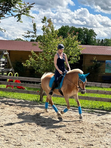 Reitbeteiligung für Haflinger Stute gesucht 🦄 Biete Reitbeteiligung für 2 Tage/ Woche. Mit eventueller Möglichkeit zur Turnierteilnahme. Zu uns: Haflinger Joanna (von Sternprinz), geb 04/2008, Dressur geritten, Stockmaß 145 (kein Gewichtsträger), geht alleine und in Gruppen ausreiten, freundliches, kooperatives Pferd, das sich gerne bewegt - drinnen und draußen. Geht gut vorwärts und ist keine faule. Sie will arbeiten und ist dabei auch stets bemüht & willig & will gefallen. Sie springt gern, kennt Longe und Cavalletti Arbeit sowie Bodenarbeit (nach Hans Tremmel). Joanna ist ein absolutes Verlasspferd & meine kleine Professorin. Besonderheiten: Asthmatikerin (muss inhaliert werden) Sommerekzemer (braucht im Sommer gute Pflege) Stall: Reitstall Summerer in Seitzersdorf-Wolfpassing - Privatstall mit Halle, Außenplatz und Longierhalle - Ausreitgebiet vorhanden - Trainerin vor Ort Ich suche eine/n Reiter:in, der/die zumindest auf Lizenzniveau Dressur reitet und auch weiter Reitstunden bei unserer Trainerin nimmt. Turnierteilnahme nächstes Jahr bei guter Entwicklung möglich. Kosten für 2 Tage: € 150,-/Monat! + Reitstunden Bei Interesse bitte PN an mich!