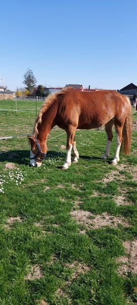I am looking for an experienced new home for my 5-year-old Haflinger-German Riding Pony cross mare (1.57 m). She is backed but has not been ridden extensively yet, so she is suitable only for experienced riders. Unfortunately, I lack the time to further train her. She is a rather dominant, extroverted, yet sensitive mare with a lot of energy. She loves to work and is always motivated. She requires clear, confident leadership, but fun should not be missing. She walks safely on the longe in all three basic gaits, and under saddle, she also moves well in walk and trot. She still needs to develop her balance in canter. She enjoys ground work and variety in training. She is barefoot without issues, loads easily, and enjoys ground work and lunging. She is familiar with open stalls, 24/7 turnout, and paddock at night. Unfortunately, she has sweet itch, but this is currently well-managed with a blanket and regular cream application. Probable riding test possible on the riding arena for serious interest. Place before price. Transport within a 100 km radius can be arranged upon request.