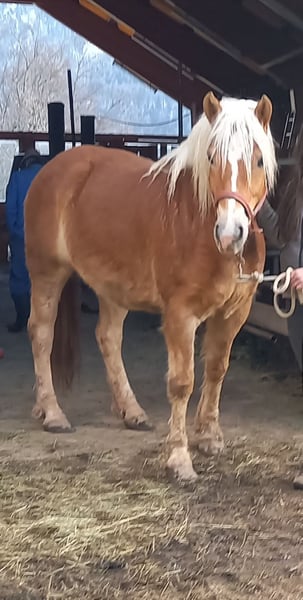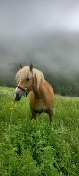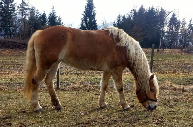 Wir verkaufen unsere 8 jährige Haflingerstute Nava aufgrund von Zeitmangel, an einen Bestplatz. 4 jährig haben wir sie von einer Alm in Slowenien gekauft, dort konnte sie im Herdenverband aufwachsen und war als 2a Zuchtstute eingetragen. Eingeritten bin ich sie dann selbst, wobei sie sehr brav war. Grundgangarten (wenig Galopp), Schenkelweichen und Halten kennt sie. Longe und Bodenarbeit auch. Ich bin sie immer ohne Sattel (mit Physiopad) geritten, da ich nie einen Passenden für sie gekauft habe. Nava ist ein sehr lernwilliges Pferd, das mehrmals die Woche gearbeitet werden will, da ihr sonst einfach langweilig ist. Sie macht nach längeren Pausen zuverlässig einige Freudenhüpfer, ist dabei jedoch nie bösartig. Wenn man sie vor dem Reiten longiert, kann sie ihre überschüssige Energie loswerden und ist dann unterm Reiter auch brav. Vor allem auf Anfänger und Kinder hat sie immer besonders gut aufgepasst, wobei sie im Umgang trotzdem einer konsequenten Führung bedarf, damit sie nicht zu frech wird - deshalb wird sie nicht als Anfängerpferd verkauft. Angst hat sie vor nichts, auch anderen Pferden zeigt sie souverän, dass man nicht nicht fürchten muss, vor Planen, Fahnen, Geräuschen usw. In der Herde ist sie eher ranghoch, ordnet sich aber ein und versteht sich mit Stuten und Wallachen gleichermaßen. Verletzt war sie bei mir nie, auch Hufrehe hatte sie nie. Sie ist extrem trittsicher, auch schmale Wanderwege meistert sie ganz selbstständig. Schmiedefromm. Momentan ist sie zu dick, mit rationierter Fütterung und etwas mehr Bewegung wird das schnell wieder. Durch unseren Familienzuwachs wurde sie länger nicht geritten, sollte aber nach ein paar Mal Longieren kein Problem sein. An der Longe hatte ich sie auch während meiner Schwangerschaft regelmäßig. Auf Wunsch kann ich sie vor dem Verkauf noch einige Male reiten. Dann wäre ein Probereiten im Schritt möglich, allerdings nur bei ernsthaftem Interesse. Wer bis jetzt gelesen hat, kennt meine ganz ehrliche Beschreibung zu unserer Nava. Ich denke wer sich in sie verliebt und Lust hat mit ihr zu arbeiten, mit dem geht sie durch Dick und Dünn. Deshalb wünsche ich mir für sie den passenden Menschen bei dem sie nicht zu kurz kommt! Platz vor Preis! Weitere Infos und Video auf Anfrage