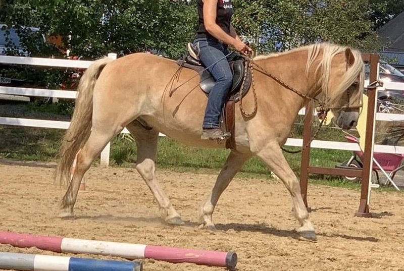 Lieber Interessent, schweren Herzens biete ich meinen bildschönen Haflingerwallach zum Verkauf an. Ich hoffe, auf diese Weise ein Zuhause für ihn zu finden, dass seinen Ansprüchen besser genügt als meins. Ich habe Akino mit einem 3/4 Jahr gekauft und er ist bei meinen älteren Haflinger-Wallachen aufgewachsen. Er hat eine solide Westerngrundausbildung mit Bosal genossen. Ich reite ihn aktuell mit Wassertrense und Vielseitigkeitssattel. Bei mir wohnt er 24/7 auf Weide bzw. befestigten Auslauf mit portioniertem Futter. Obwohl er mittlerweile aus dem Kindesalter entwachsen ist, genügt es ihm nicht 1-2x/Woche geritten zu werden. Mehr kann ich ihm zur Zeit leider nicht bieten. Wir gehen meist alleine ins Gelände. Hier ist er sehr umgänglich und leicht zu händeln. Angst hat er keine, aber unerschrocken würde ich ihn nicht nennen. Wir haben ebenfalls viel Freude an unseren klassisch-Dressur-Reitstunden. Akino apportiert gerne. Ich wünsche mir ein Zuhause bei jemanden, der ihn weiter fordert und fördert und der 5-7x/Woche mit ihm etwas machen möchte. er ist regelmäßig geimpft und entwurmt. Ich reite ihn barhuf und ggf. mit Hufschuhen. Beschlagen war er bisher noch nie. Akino ist ein gutmütiger Freizeit-Partner. Er ist sehr schlau, was bedeutet, er lernt nicht nur gewünschte Dinge sehr schnell. Er ist kein Anfänger-Pferd und kein Familienpferd. Eine Bezugsperson, die er nicht mit anderen Pferden teilen muss, käme ihm sicher gelegen. Wenn Du noch Fragen hast, melde Dich bitte. Viele Grüße!