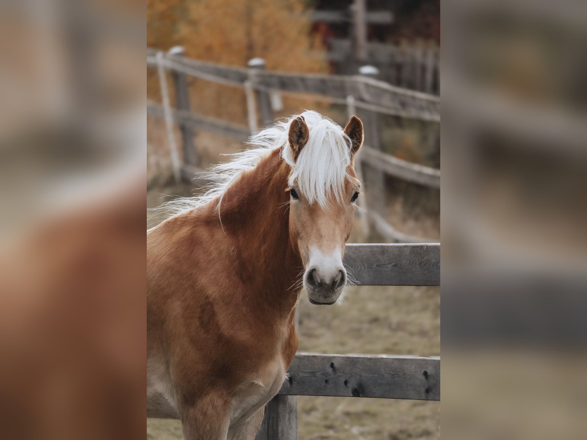 Benetton is a very tall Haflinger who comfortably carries the weight of an adult rider. He is very curious and not spooky. He is also accustomed to dogs. He has been microchipped and is regularly dewormed. In spring, he was foaled and was able to spend his second summer in the mixed herd on the mountain pasture, where he gained confidence and resilience. His mother and father are both used in our operation to pull carriages and are regularly ridden. His beautiful coat and friendly nature make him a great companion for leisure riding.
