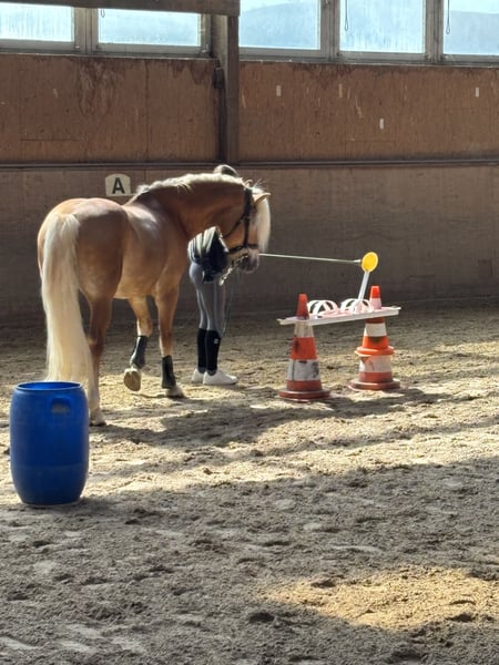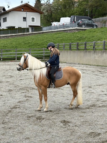 Winnie ist ein Sporthaflinger, geboren im Jahr 2020. Er ist von einer Anerkannten Haflinger Züchterin aus Südtirol. Sein Vater ist Waldmeister-T (BZ27609) und seine Mutter ist Iris (BZ22804). Seit 2024 wir mit ihm gearbeitet. Im März 2025 würde er kastriert. Und kam dann nach Deutschland. Winnie ist ein sehr verschmustest Pferdchen, das sehr lernwillig und Mutig ist. Er hat einen sehr freundlichen Charakter und zeigt ein sehr großes Herz. Jedoch zeigt er gerne auch mal seine Sturheit und ist daher nicht für unerfahrene und kleine Reiter (Kinder) geeignet. Nicht so wohl fühlt er sich in einer überfüllten Reithalle/Platz, daher die Rote Schleife im Schweif. Er kennt die Doppellonge, longieren, Bodenarbeit und Trail Training. Bisher wurde er Richtung springen ausgebildet, und zeigt hier viel Potenzial und Spaß. Auch Dressur mäßig ist er in den Grundlagen gearbeitet. Jedoch ist er noch in seiner Ausbildung. Mit seinen Gängen ist er definitiv als Turnier Pferd geeignet. Im Gelände zeigt er sich sicher und motiviert. Strand und Wasser kennt er ebenfalls. Traktoren, Busse, Autos usw. sind kein Problem für ihn. Momentan steht er nachts in der Box und Tagsüber einzeln auf dem Paddock, wobei er mit seinen Nachbarn spielen und kraulen kann. Wir wünschen uns für ihn einen liebevollen Reiter/-in der Spaß hat sein Potenzial voll auszuschöpfen, und mit ihm einen Freund fürs Leben findet.