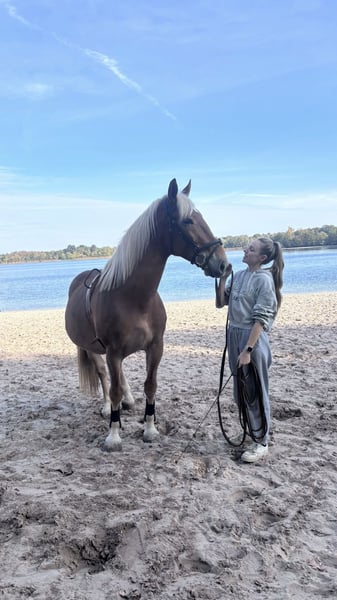 Balou is een 7-jarige ruin van 1.60m, afkomstig uit Hongarije en sinds begin 2023 in Nederland. Over Balou: Balou is een echte werker en laat zien dat hij graag wilt. Hij heeft nog weinig ervaring en heeft dus nog wat begeleiding nodig. Hij gaat goed op veel afwisseling. Elke dag rijden in de bak is hij na een tijdje beu. Af en toe een sprongetje maken vindt hij ook leuk. Hij is nog nooit naar buiten geweest en dus ook niet verkeersmak. Onze buitenbak en longeercirkel staat aan de weg. Maar wanneer er auto’s, fietsers of groot verkeer langskomen kijkt hij er nauwelijks van op. Begin oktober 2025 zijn we met hem voor het eerst aan de hand naar het strandje geweest (500m lopen van stal). We zijn maar 15 min weggeweest maar was voor hem lang genoeg. Hij vond het erg spannend maar het ging wel heel erg goed. Omdat we alleen tussen oktober en april op het strand mogen met honden en paarden was het ook heel druk met loslopende honden. Hierdoor bouwde hij wel veel spanning op. Hij luistert naar zijn naam en komt naar je toe lopen als je hem roept. Ook met longeren gaat hij goed op je stem en reageert op de commando’s. Karakter: Balou is een echte persoonlijkheid. Een knuffelkont die graag contact zoekt en zich soms letterlijk tegen je aan komt hangen. Balou is niet geschikt voor kinderen of beginnende ruiters, vanwege zijn soms onvoorspelbare gedrag en forse kracht. Aan de hand kan hij uitdagend zijn. Soms loopt hij keurig met je mee, maar op andere momenten trekt hij of gaat hij rennen. Een hengstenketting is daarom echt noodzakelijk. Dit gaat de laatste tijd wel steeds beter en begint hij steeds meer lief achter je aan te lopen. Ook heeft Balou een uniek en grappig trekje: hij vindt het ontzettend leuk als je met zijn tong speelt. Hij kan daar echt van genieten en het werkt vaak ontspannend voor hem. Het zegt veel over zijn nieuwsgierige, soms wat ondeugende karakter. Wat zoekt Balou? Balou heeft een ervaren, consequente ruiter of begeleider nodig die stevig in zijn/haar schoenen staat. Iemand die hem verder wil opleiden, duidelijke grenzen kan stellen en voldoende tijd heeft om met hem te werken. Met de juiste persoon en aanpak kan Balou echt een fijn, werkwillig paard worden. Hij wordt aangeboden voor recreatief gebruik – dus voor iemand die graag ontspannen met zijn paard wil werken, buitenritten wil maken, eventueel aan de slag wil gaan met grondwerk of mennen, maar geen sportambities heeft. maar op zoek is naar een bijzondere pony om rustig en bewust mee aan de slag te gaan. Waarom verkoop ik hem? Met pijn in mijn hart heb ik helaas de beslissing moeten nemen om Balou te verkopen omdat ik merk dat de klik tussen ons weg is. Balou verdient iemand met wie hij die klik wel gaat krijgen, iemand die met frisse energie en liefde met hem verder wil. Iemand die daar de tijd voor heeft en die hem de begeleiding kan geven die hij nodig heeft. Met rijden kent hij de basis maar moet nog goed doorgereden worden om het echt onder de knie te krijgen. Ook denken we dat hij vroeger voor de kar heeft gestaan. Ik denk dat als je dit opnieuw zou oppakken/aanleren dat je er een leuk menpaard van kan maken. Ik zoek een goed huisje voor hem met iemand waar hij verder getraind kan worden. Iemand die daar de tijd, ervaring en geduld voor heeft. Als hij het eenmaal onder de knie heeft dan is het echt een top paard en kan je alles met hem. Extra informatie. - in november 2023 is Balou klinisch en röntgenlogisch goed gekeurd op benen en hoeven. Rapport en foto's zijn aanwezig. Opnieuw keuren is voor eigen kosten. - Balou heeft elk jaar zijn verplichte entingen gehad. - Begin 2024 zijn zijn wolfskiezen getrokken. Oktober 2025 heeft hij weer een gebitbehandeling gehad. Dierenarts gaf aan dat er bij hem weinig hoefde te gebeuren en dat hij prima om de 1,5/2 jaar gedaan hoeft te worden. - elke 8 weken wordt hij bekapt. Hij staat niet op ijzers. - filmpjes van longeren of rijden beschikbaar. - bij de koop van Balou kan je ook spullen overnemen. Waaronder zadel en hoofdstel. We kunnen samen even kijken wat je wilt hebben. - geen stalgebreken. - super lief met andere paarden in de wei.