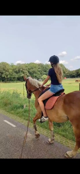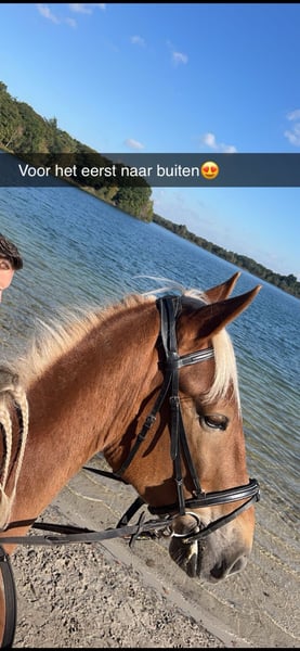 Balou is een 8-jarige ruin van 1.60m, afkomstig uit Hongarije en sinds begin 2023 in Nederland. Over Balou: Balou is een echte werker en laat zien dat hij graag wilt. Hij heeft nog weinig ervaring en heeft dus nog wat begeleiding nodig. Hij gaat goed op veel afwisseling. Elke dag rijden in de bak is hij na een tijdje beu. Af en toe een sprongetje maken vindt hij ook leuk. Hij is nog nooit naar buiten geweest en dus ook niet verkeersmak. Onze buitenbak en longeercirkel staat aan de weg. Maar wanneer er auto’s, fietsers of groot verkeer langskomen kijkt hij er nauwelijks van op. Begin oktober 2025 zijn we met hem voor het eerst aan de hand naar het strandje geweest (500m lopen van stal). We zijn maar 15 min weggeweest maar was voor hem lang genoeg. Hij vond het erg spannend maar het ging wel heel erg goed. Omdat we alleen tussen oktober en april op het strand mogen met honden en paarden was het ook heel druk met loslopende honden. Hierdoor bouwde hij wel veel spanning op. Hij luistert naar zijn naam en komt naar je toe lopen als je hem roept. Ook met longeren gaat hij goed op je stem en reageert op de commando’s. Karakter: Balou is een echte persoonlijkheid. Een knuffelkont die graag contact zoekt en zich soms letterlijk tegen je aan komt hangen. Balou is niet geschikt voor kinderen of beginnende ruiters, vanwege zijn soms onvoorspelbare gedrag en forse kracht. Aan de hand kan hij uitdagend zijn. Soms loopt hij keurig met je mee, maar op andere momenten trekt hij of gaat hij rennen. Een hengstenketting is daarom echt noodzakelijk. Dit gaat de laatste tijd wel steeds beter en begint hij steeds meer lief achter je aan te lopen. Ook heeft Balou een uniek en grappig trekje: hij vindt het ontzettend leuk als je met zijn tong speelt. Hij kan daar echt van genieten en het werkt vaak ontspannend voor hem. Het zegt veel over zijn nieuwsgierige, soms wat ondeugende karakter. Wat zoekt Balou? Balou heeft een ervaren, consequente ruiter of begeleider nodig die stevig in zijn/haar schoenen staat. Iemand die hem verder wil opleiden, duidelijke grenzen kan stellen en voldoende tijd heeft om met hem te werken. Met de juiste persoon en aanpak kan Balou echt een fijn, werkwillig paard worden. Hij wordt aangeboden voor recreatief gebruik – dus voor iemand die graag ontspannen met zijn paard wil werken, buitenritten wil maken, eventueel aan de slag wil gaan met grondwerk of mennen, maar geen sportambities heeft. maar op zoek is naar een bijzondere pony om rustig en bewust mee aan de slag te gaan. Waarom verkoop ik hem? Met pijn in mijn hart heb ik helaas de beslissing moeten nemen om Balou te verkopen omdat ik merk dat de klik tussen ons weg is. Balou verdient iemand met wie hij die klik wel gaat krijgen, iemand die met frisse energie en liefde met hem verder wil. Iemand die daar de tijd voor heeft en die hem de begeleiding kan geven die hij nodig heeft. Met rijden kent hij de basis maar moet nog goed doorgereden worden om het echt onder de knie te krijgen. Ook denken we dat hij vroeger voor de kar heeft gestaan. Ik denk dat als je dit opnieuw zou oppakken/aanleren dat je er een leuk menpaard van kan maken. Ik zoek een goed huisje voor hem met iemand waar hij verder getraind kan worden. Iemand die daar de tijd, ervaring en geduld voor heeft. Als hij het eenmaal onder de knie heeft dan is het echt een top paard en kan je alles met hem. Extra informatie. - in november 2023 is Balou klinisch en röntgenlogisch goed gekeurd op benen en hoeven. Rapport en foto's zijn aanwezig. Opnieuw keuren is voor eigen kosten. - Balou heeft elk jaar zijn verplichte entingen gehad. - Begin 2024 zijn zijn wolfskiezen getrokken. Oktober 2025 heeft hij weer een gebitbehandeling gehad. Dierenarts gaf aan dat er bij hem weinig hoefde te gebeuren en dat hij prima om de 1,5/2 jaar gedaan hoeft te worden. - elke 8 weken wordt hij bekapt. Hij staat niet op ijzers. - filmpjes van longeren of rijden beschikbaar. - bij de koop van Balou kan je ook spullen overnemen. Waaronder zadel en hoofdstel. We kunnen samen even kijken wat je wilt hebben. - geen stalgebreken. - super lief met andere paarden in de wei.