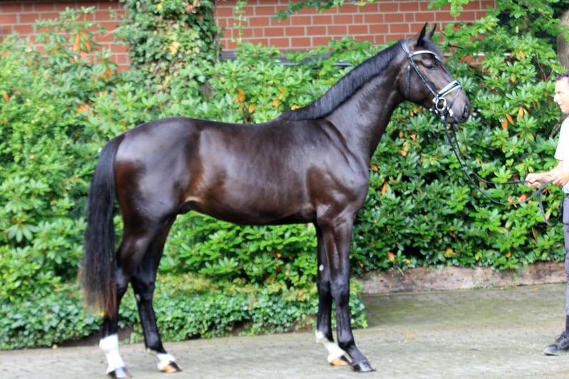 Deze imposante en typvolle zwarte hengst heeft een pedigree van uitzonderlijke klasse. Vader Secret wordt nu al beschouwd als een uitzonderlijk paard met een nog nooit eerder vertoonde verervingsbalans, en ook moedervader Fürstenball is een lijnoprichter van de moderne dressuurpaardenfokkerij. Alleen al op het Wereldkampioenschap voor jonge dressuurpaarden in Ermelo 2024 stelt Secret 15 deelnemers, waarvan 10 in de ranking van de zesjarige paarden. Daaronder de vice-kampioen van de vierjarigen, de winnaar van de bronzen medaille van de vijfjarigen en de vice-wereldkampioen van de zesjarige dressuurpaarden. Op het gelijktijdig gehouden Bundeschampionat gingen nog eens 25 nakomelingen van Secret van start, waaronder talrijke finale-deelnemers en de vice-bundeschampion van de vierjarige merries en ruinen. Het aantal goedgekeurde en erkende zonen is volgens de FN gestegen naar 55, waaronder talrijke premiehengsten en gevierde prijswinnaars. In de fokkerijbalans van Fürstenball zijn meer dan 100 goedgekeurde zonen geregistreerd, waaronder de EM-deelnemer Fuerstenglory OLD, de winnaarhengst, Bundeschampion en Burg-Pokal-derde Fürsten-Look, de winnaarhengst Fürst Zonik PS, de winnaarhengst en Grand Prix-geplaatste Fürst Fabrice OLD, de winnaarhengst, Oldenburger landeschampion en S-winnaar Follow Me OLD, de Bundeschampionat-vierde en Louisdor-prijs-zevende Falihandro en de Children-EM-team- en individueel zilveren winnaar Fürst Schwarzenberg. Al in de beginfase van het werk toont de hengst drie zeer goede basisgangen en een uitstekende werkhouding. Röntgenfoto's zijn beschikbaar. Video op aanvraag.