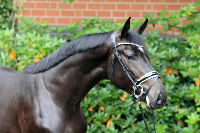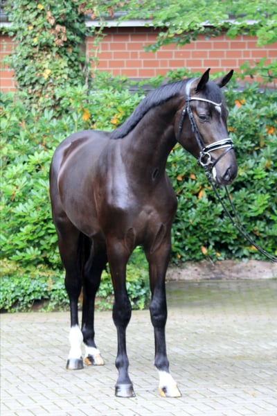 This impressive and typologically strong black stallion boasts a pedigree of exceptional quality. Sire Secret is already regarded as an extraordinary horse with an unprecedented breeding record, and the dam's sire Fürstenball is a founding line of modern dressage horse breeding. At the World Championships for Young Dressage Horses in Ermelo 2024, Secret alone has 15 participants, 10 of whom are in the ranking of the six-year-old horses. This includes the vice-champion of the four-year-olds, the bronze medal winner of the five-year-olds, and the vice-world champion of the six-year-old dressage horses. Concurrently, at the Bundeschampionat, another 25 offspring of Secret competed, including numerous finalists and the vice-bundeschampion of the four-year-old mares and geldings. According to FN, the number of licensed and recognized sons has risen to 55, including numerous premium stallions and celebrated price peaks. In Fürstenball's breeding record, more than 100 licensed sons are listed, including the European Championship participant Fuerstenglory OLD, the winning stallion, Bundeschampion, and Burg-Pokal third-place winner Fürsten-Look, the winning stallion Fürst Zonik PS, the winning stallion and Grand Prix-placed Fürst Fabrice OLD, the winning stallion, Oldenburg state champion, and S-winning Follow Me OLD, the Bundeschampionship fourth-place and Louisdor Prize seventh-place Falihandro, and the Children’s European Championship team and individual silver medalist Fürst Schwarzenberg. Already in the early stages of training, the stallion shows three very good basic gaits and an excellent work ethic. X-ray images are available. Video upon request.