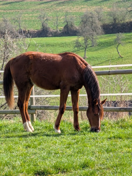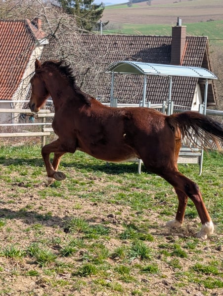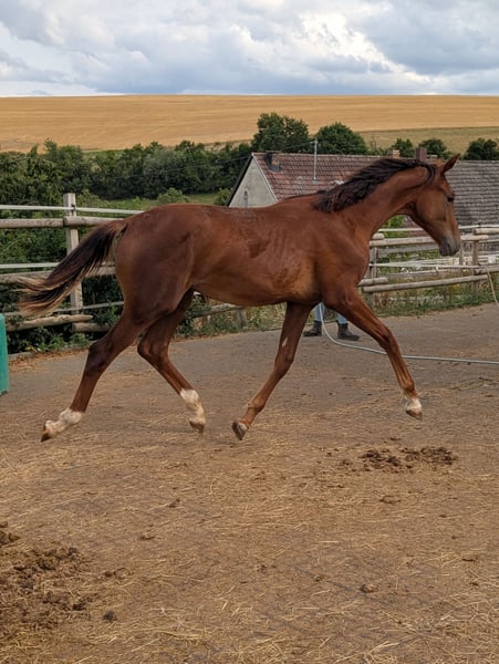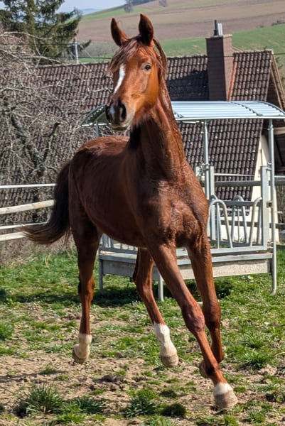 Charakter, Adel und Sportlerherz Zum Verkauf steht der 20 Monate alte Hannoveraner-Hengst Escario (geb. 07.07.2024). Ein Youngster mit Format, der durch seine enorme Ausdrucksstärke und sein sportliches Temperament besticht. Was Escario ausmacht: Escario ist kein Pferd für jedermann – er ist eine hochsensible, feurige Persönlichkeit. Er ist keine „Schlaftablette“, sondern ein echtes Sportlerherz mit einer schnellen Auffassungsgabe und dem nötigen „Go“. Wer ein Pferd mit einer feinen Kommunikation sucht und das Besondere zu schätzen weiß, findet hier einen hochinteressanten Rohdiamanten. Er ist absolut aufmerksam, menschenbezogen, sehr gelehrig und braucht einen Reiter/Ausbilder, der seine Energie zu nutzen weiß. Genetik für höchste Ansprüche: Vater: Der Ausnahmehengst Escanto PS (Old) (v. Escamillo). Er steht für moderne Dressurgenetik, Elastizität und höchste Leistungsbereitschaft. Mutter: Die Hauptstutbuchstute Fabienne (Hann) (v. Fürst Jazz / Totilas-Blut). Sie gibt ihm seinen Adel und seine Kraft mit. Eckdaten & Aufzucht: Name: Escario (Hannoveraner) Geboren: 07.07.2024 (18 Monate alt) Farbe: Dunkelfuchs mit schöner Zeichnung (Blesse, Schnippe, drei weiße Füße) Standort: 67742 Escario ist kein Notverkauf. Ich suche für ihn einen Partner, der seine Qualität zu schätzen weiß und ihn zielgerichtet fördern möchte. Bei ernsthaftem Interesse freue ich mich über Ihre Nachricht oder Ihren Anruf, um ein persönliches Kennenlernen zu vereinbaren.