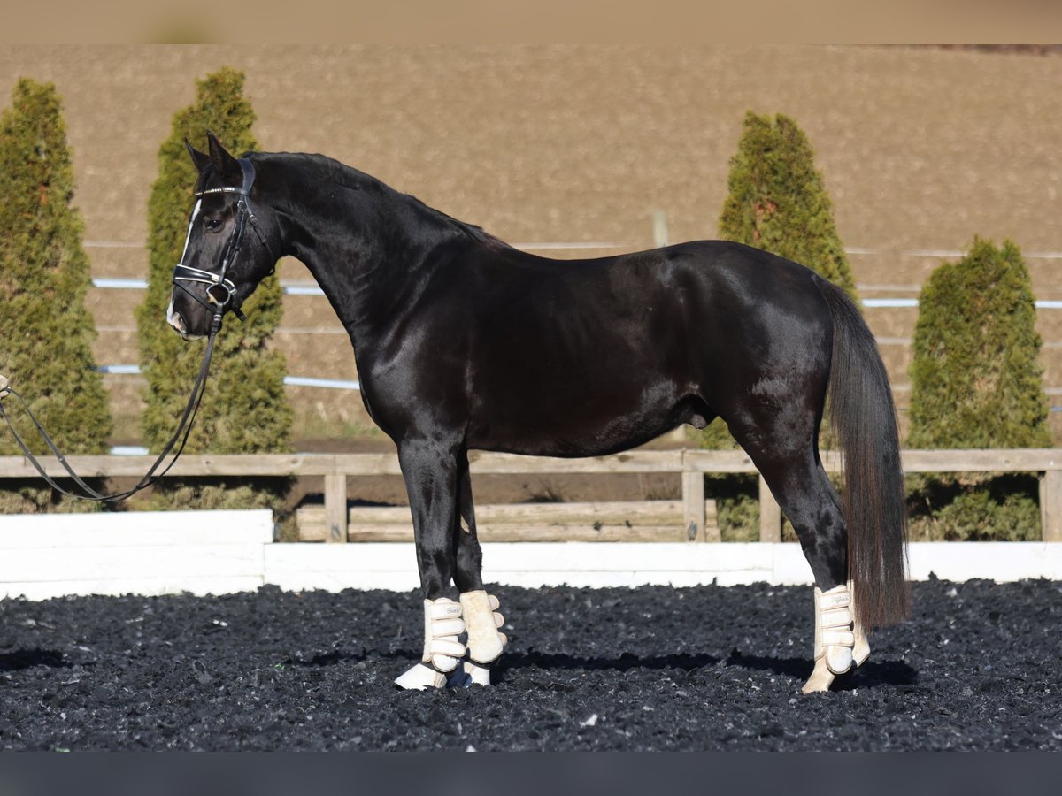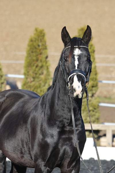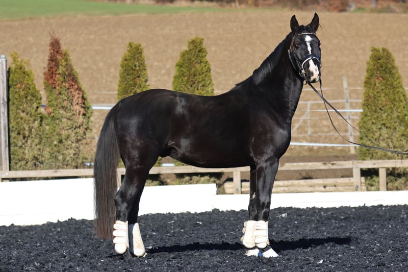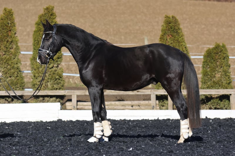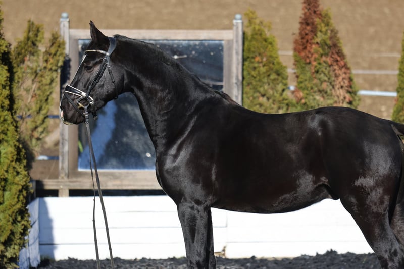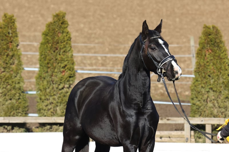 Zum Verkauf steht ein bildschöner, lackschwarzer Hengst aus dem Jahrgang 2022, der keine Wünsche offen lässt. Dieser junge Mann besticht nicht nur durch seine noble Optik, sondern auch durch ein erstklassiges Pedigree, das Erfolg im Viereck verspricht.