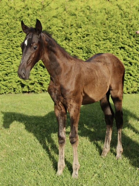 Na sprzedaż jest elegancki ogierek od Leclerc z matki, która jest sprawdzoną klaczą z linii Le Vivaldi x De Niro, posiadającą tytuł państwowej premiowanej klaczy. Matka pochodzi z linii klaczy odnoszących sukcesy sportowe, była rozwijana do klasy L i zdała bardzo dobrą SLP. Ten typowy ogierek maści gniadej przekonuje nie tylko swoją szlachetną aparycją, ale przede wszystkim swoim niezwykle towarzyskim i przyjaznym usposobieniem. Od początku wykazuje ciekawość, otwartość i łatwość w obcowaniu – to prawdziwy koń, na którym można polegać w przyszłości. Oprócz doskonałego wnętrza, imponuje poprawnym, typowym eksterierem oraz trzema bardzo dobrymi podstawowymi chodami. Szczególnie wyróżnia się jego naturalną lekkością, aktywną tylną nogą oraz przestronnym, kroczącym krokiem. Jego poprawna budowa, jakość ruchu oraz doskonałe wnętrze czynią go obiecującym młodym koniem – z potencjałem na udaną karierę sportową i wiele radości! Miejsce do wychowania byłoby dostępne.